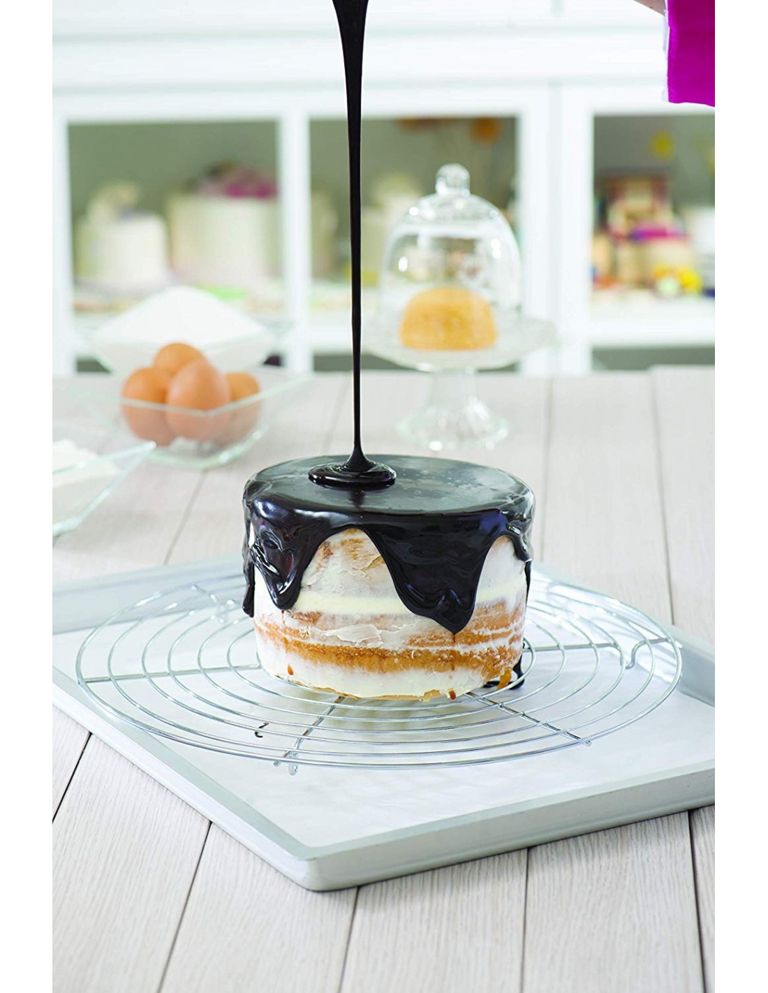 Es perfecta también como sostén durante el glaseado del postre y, si se lo coloca sobre una bandeja, permite recuperar el exceso de glasé.