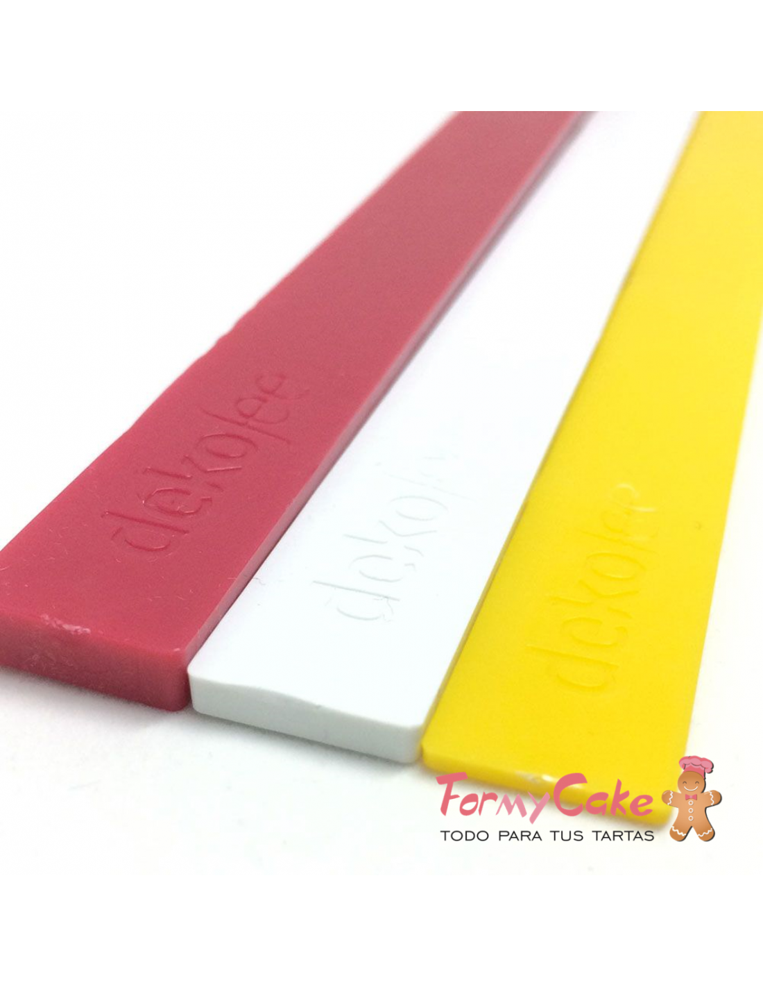 Con este set de igualadores de Dekofee podrás extender fondant, mazapán o cualquier masa a la misma altura. El set contiene 3 grosores: 5 mm (rojo), 3 mm (amarillo) y 1,5 mm (blanco).