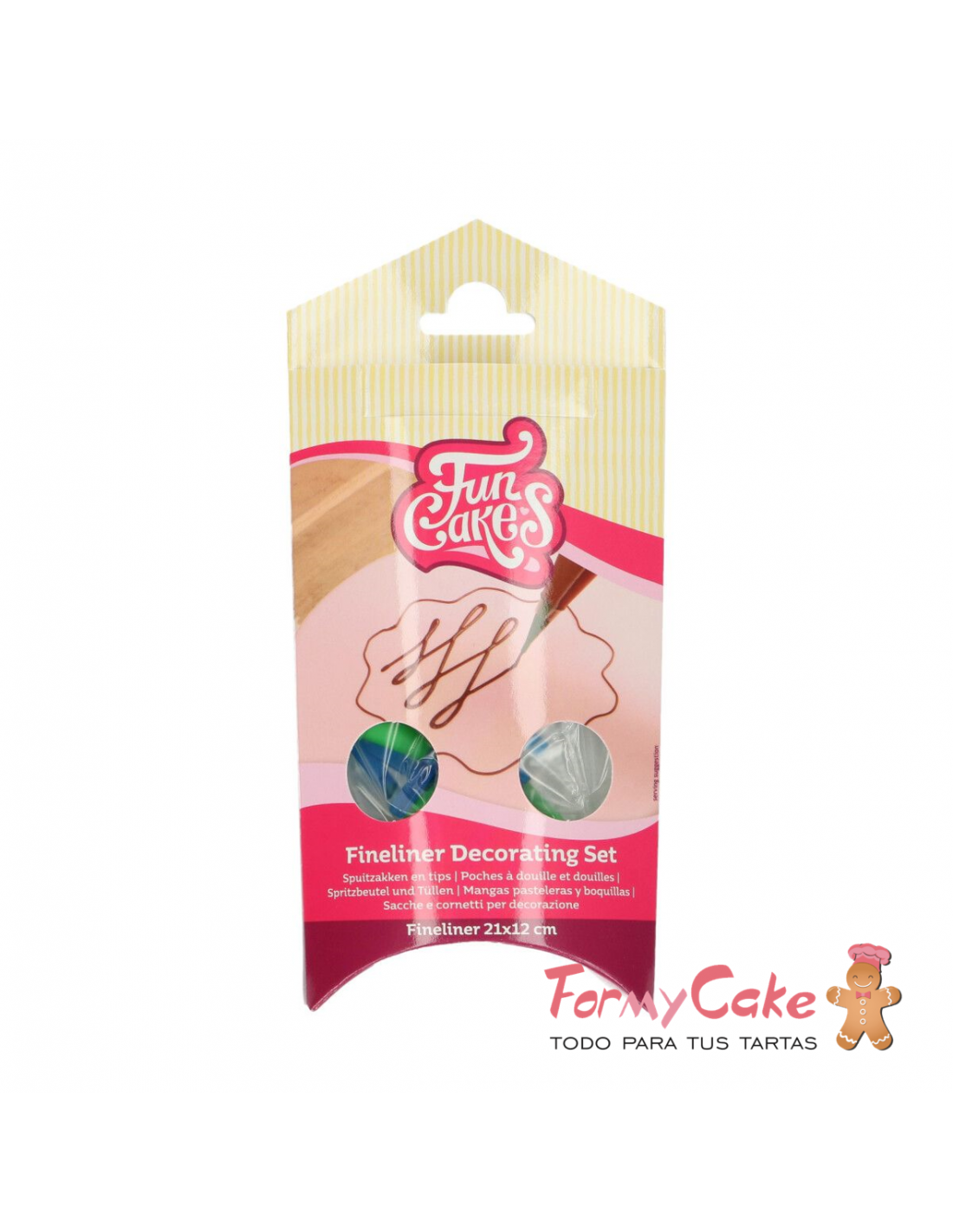 El set Fineliner de FunCakes es un set de 10 mangas pasteleras desechables con boquillas. Las boquillas son perfectas para hacer decoraciones muy precisas como letras y números y puedes utilizarlas con elementos fluidos como el chocolate. El Fineliner puede ser rellenado antes de utilizar, conservar en el frigorífico y calentar cuando se vaya a utilizar en el microondas o al baño Mariah.
