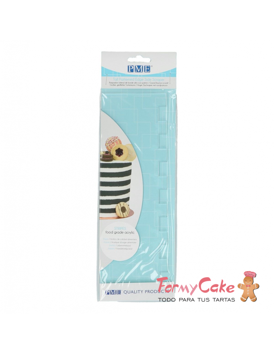 Los rascadores laterales de bordes de diseño alto de PME son una herramienta muy práctica y perfecta para utilizar en tartas de crema de mantequilla lisa o rayada. Los dos lados del rascador se pueden utilizar, un lado es liso y el otro tiene un patrón de rayas. También es perfecto para usar con chocolate o royal icing.
