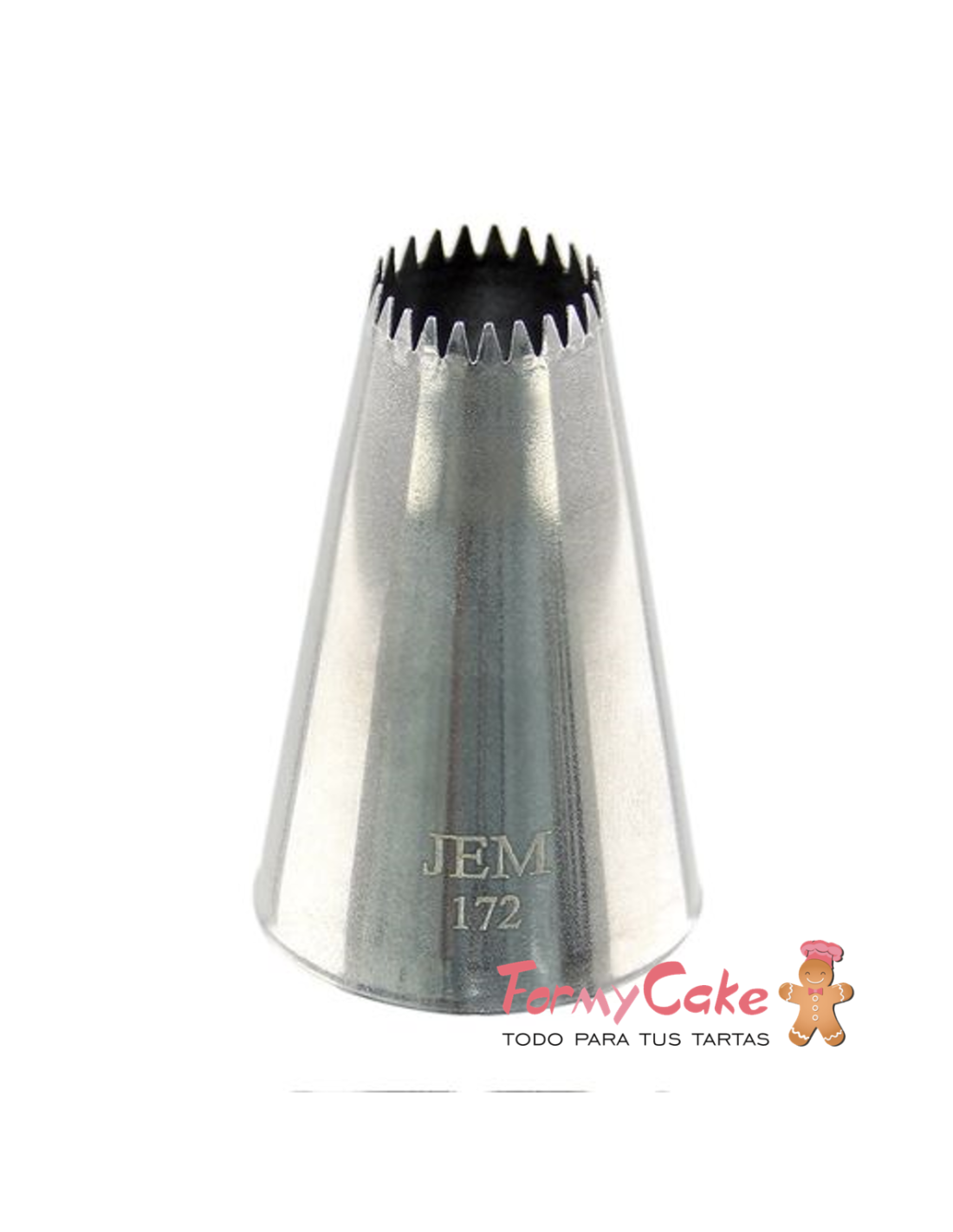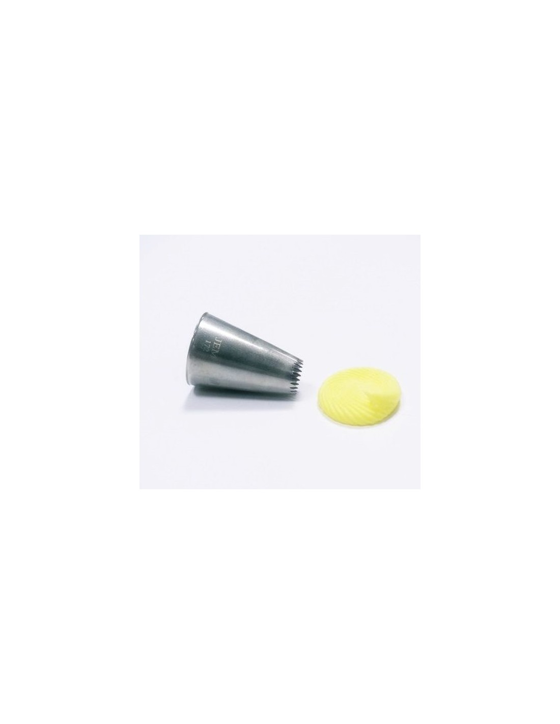 Boquilla de Estrella Abierta de Dientes Finos JEM no. 172 Ideal para técnicas de estrellas, gotas de flores, conchas, rosetas y decoraciones con muchas crestas. Tamaño: Diámetro de la punta: 11,7 mm Diámetro de la base: 25 mm Altura: 38 mm Nº de Puntos: 23 Todas las boquillas son aptas para utilizarlas con mangas desechables y de tela. Realizadas en acero inoxidable de alta calidad sin soldaduras. Se recomienda lavar a mano con agua tibia y jabón.