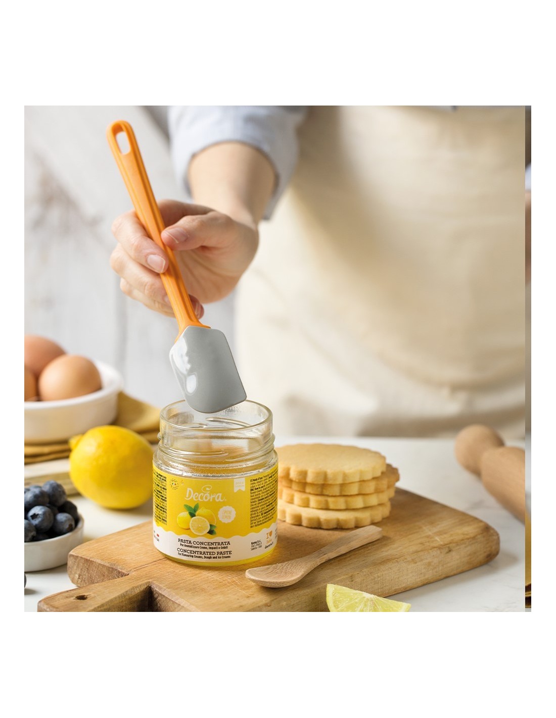 Utensilio de cocina en Silicona 100% Platino*, con mango ergonómico de plástico. Indispensable para mezclar cualquier tipo de preparación, dulce o salada.