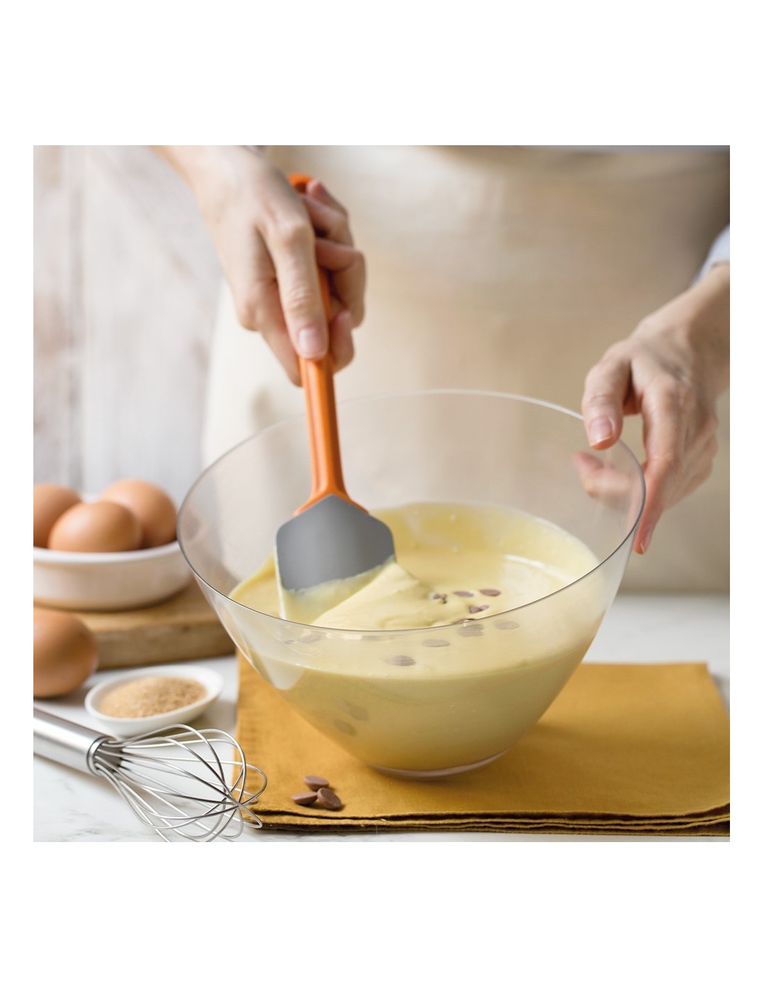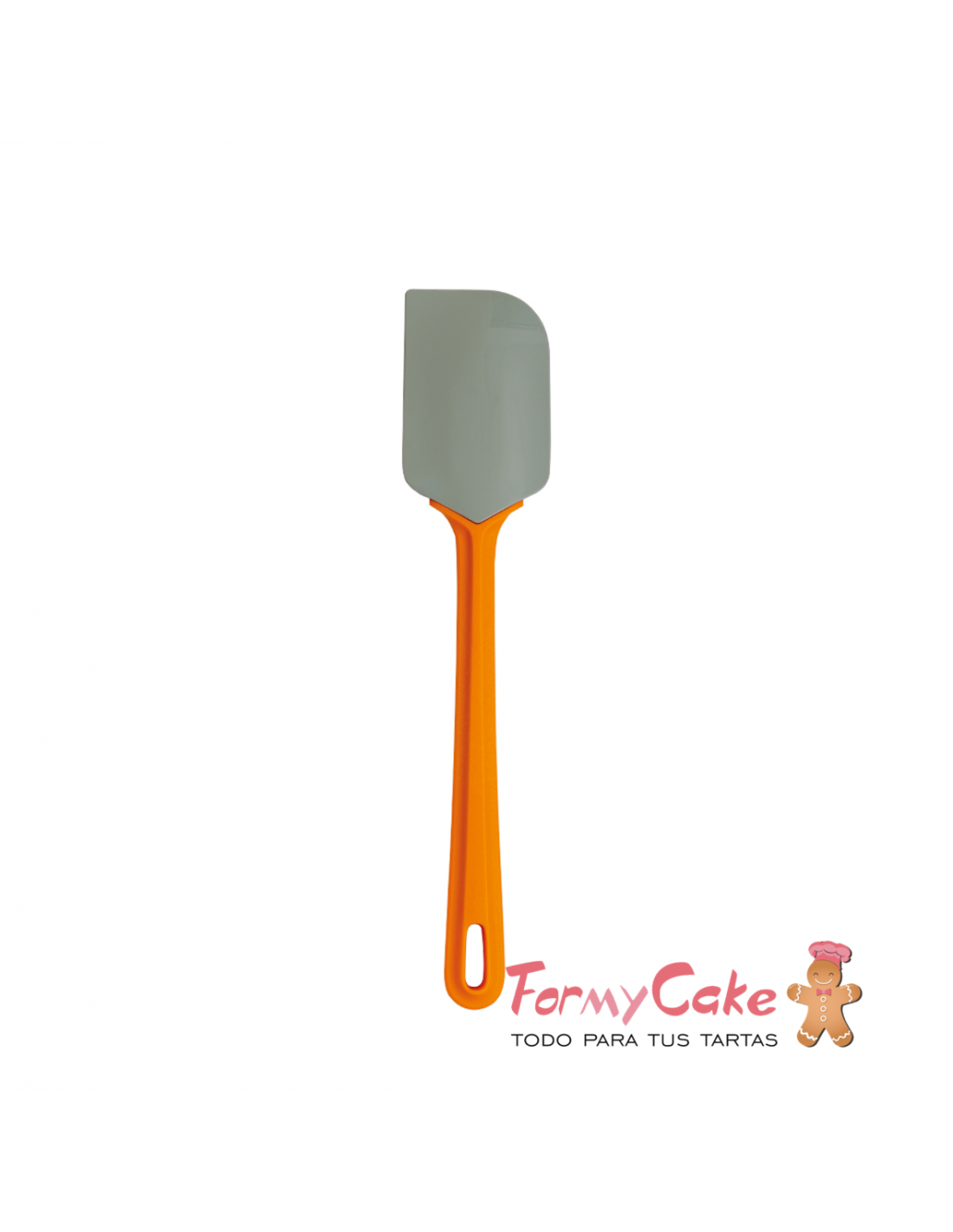 Utensilio de cocina en Silicona 100% Platino*, con mango ergonómico de plástico. Indispensable para mezclar cualquier tipo de preparación, dulce o salada.