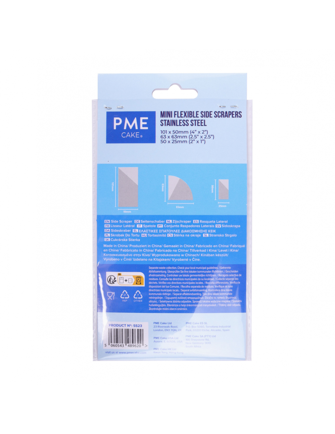 - Las rasquetas laterales flexibles PME Mini están diseñadas para los detalles más finos y delicados de la decoración de pasteles o para dar un acabado limpio y excepcional a tus pasteles