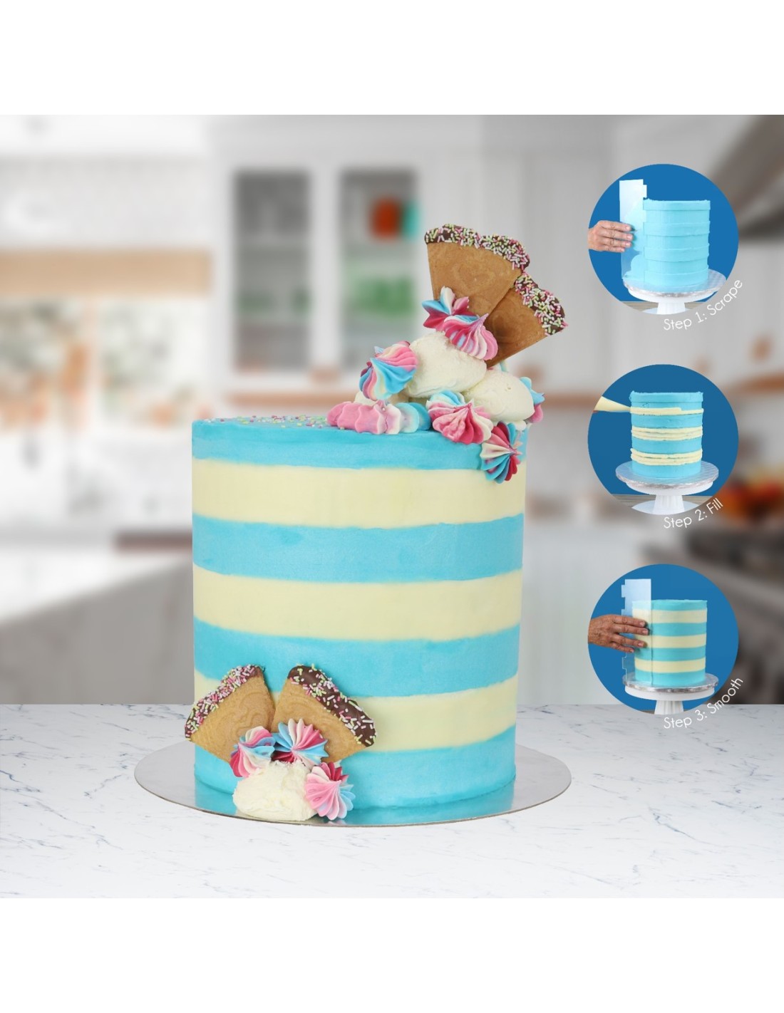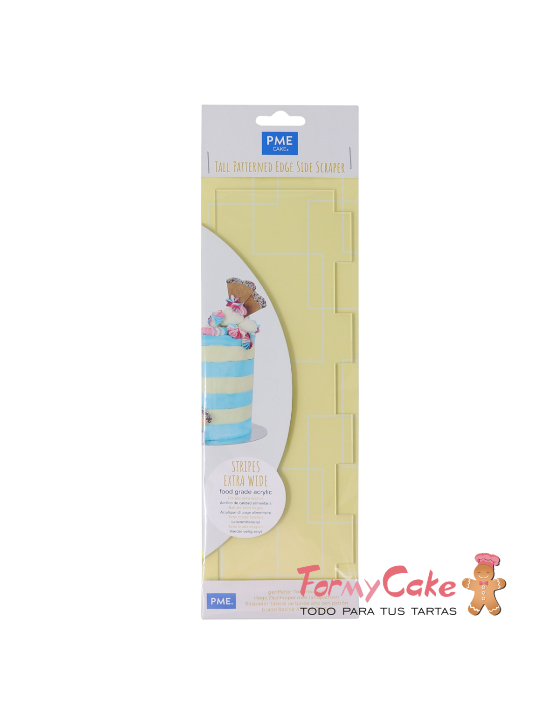 Los rascadores laterales de bordes de diseño alto de PME son una herramienta muy práctica y perfecta para utilizar en tartas de crema de mantequilla lisa o rayada. Los dos lados del rascador se pueden utilizar, un lado es liso y el otro tiene un patrón de rayas. También es perfecto para usar con chocolate o royal icing.