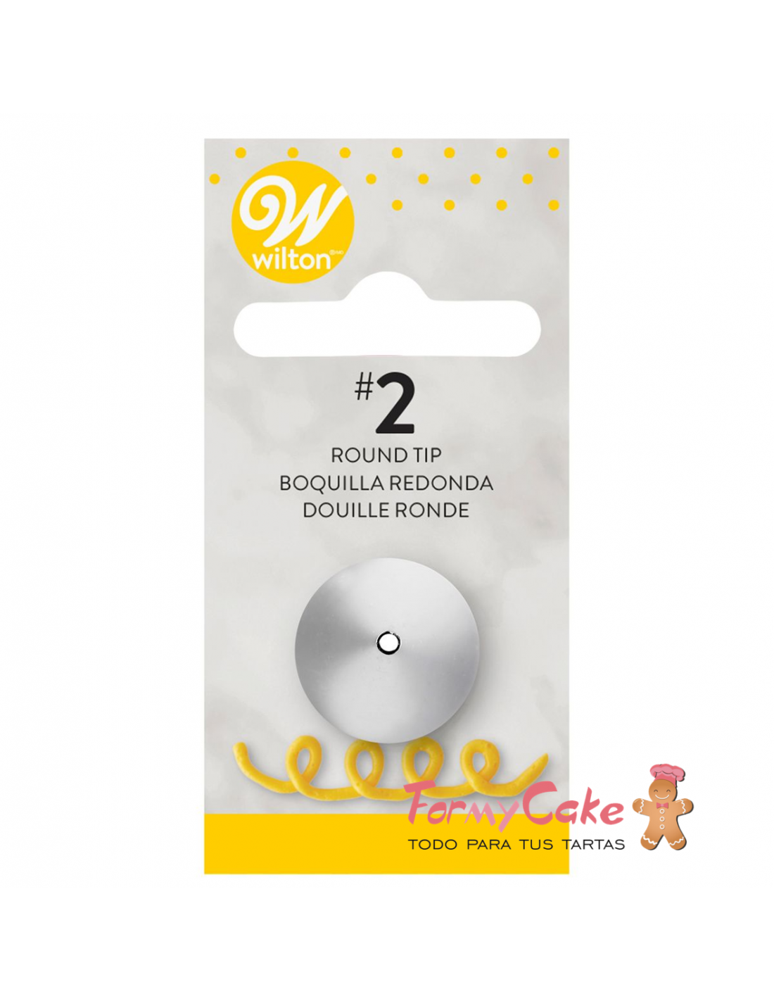 Boquilla de metal (decorating tip) de Wilton para crear lazos, letras, bolas, perlas, encaje, etc. Se suministra empaquetado por unidad, en un blíster (con tarjeta de identificación).