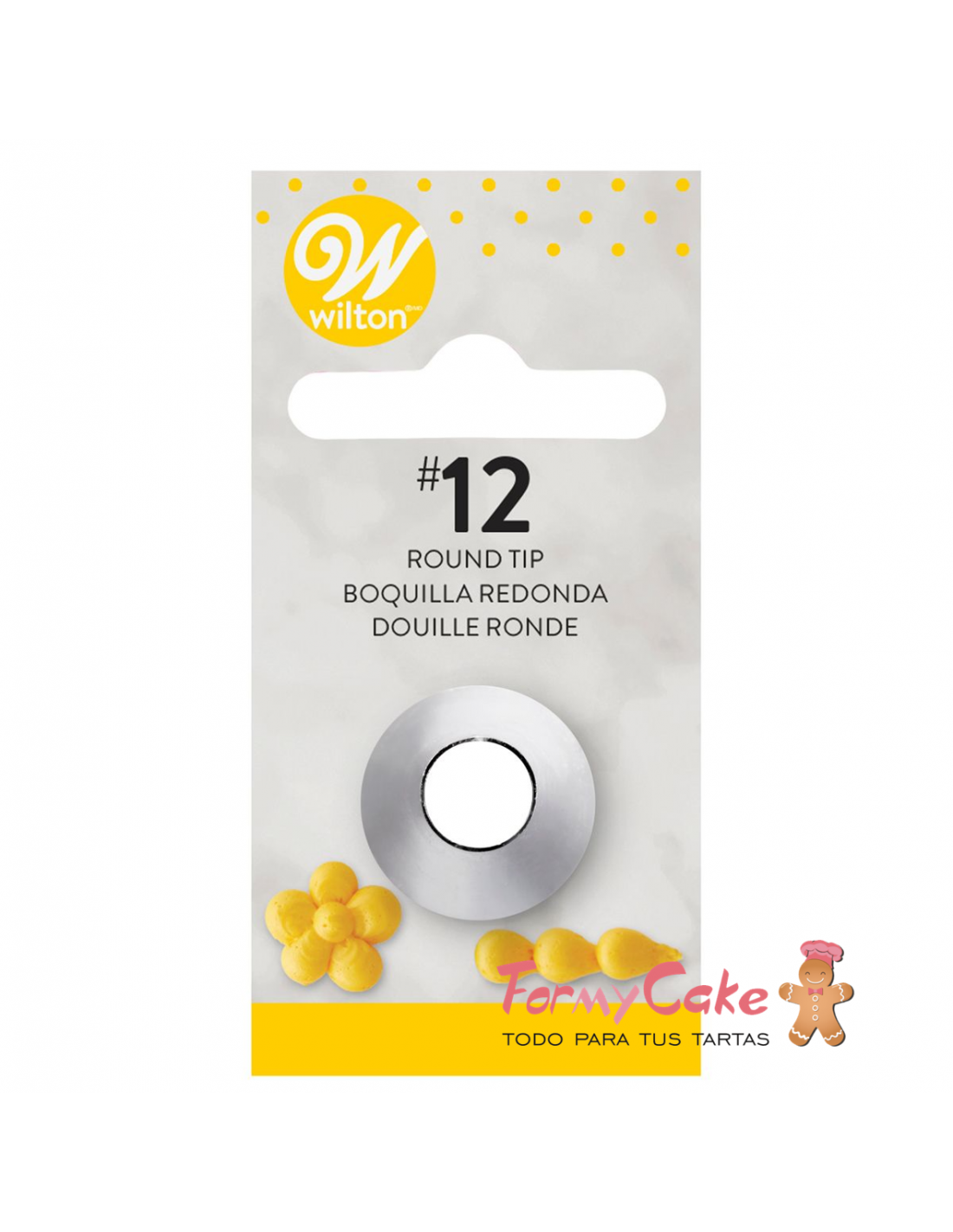 Boquilla de metal (decorating tip) de Wilton para crear lazos, letras, bolas, perlas, encaje, etc. Se suministra empaquetado por unidad, en un blíster (con tarjeta de identificación).