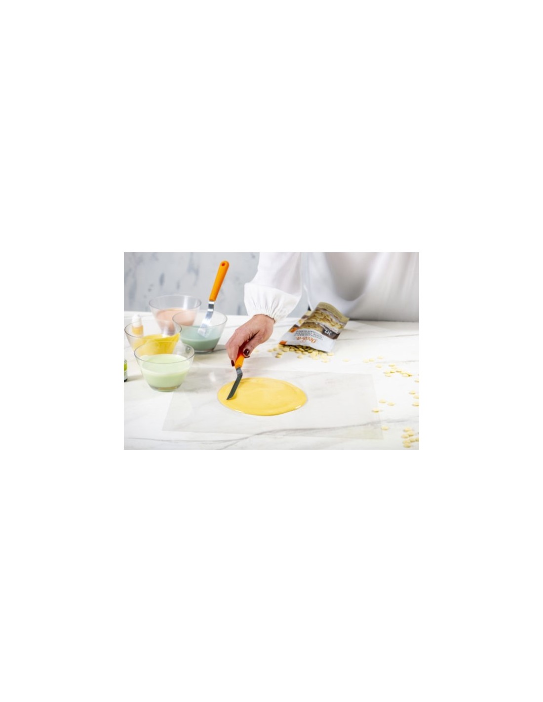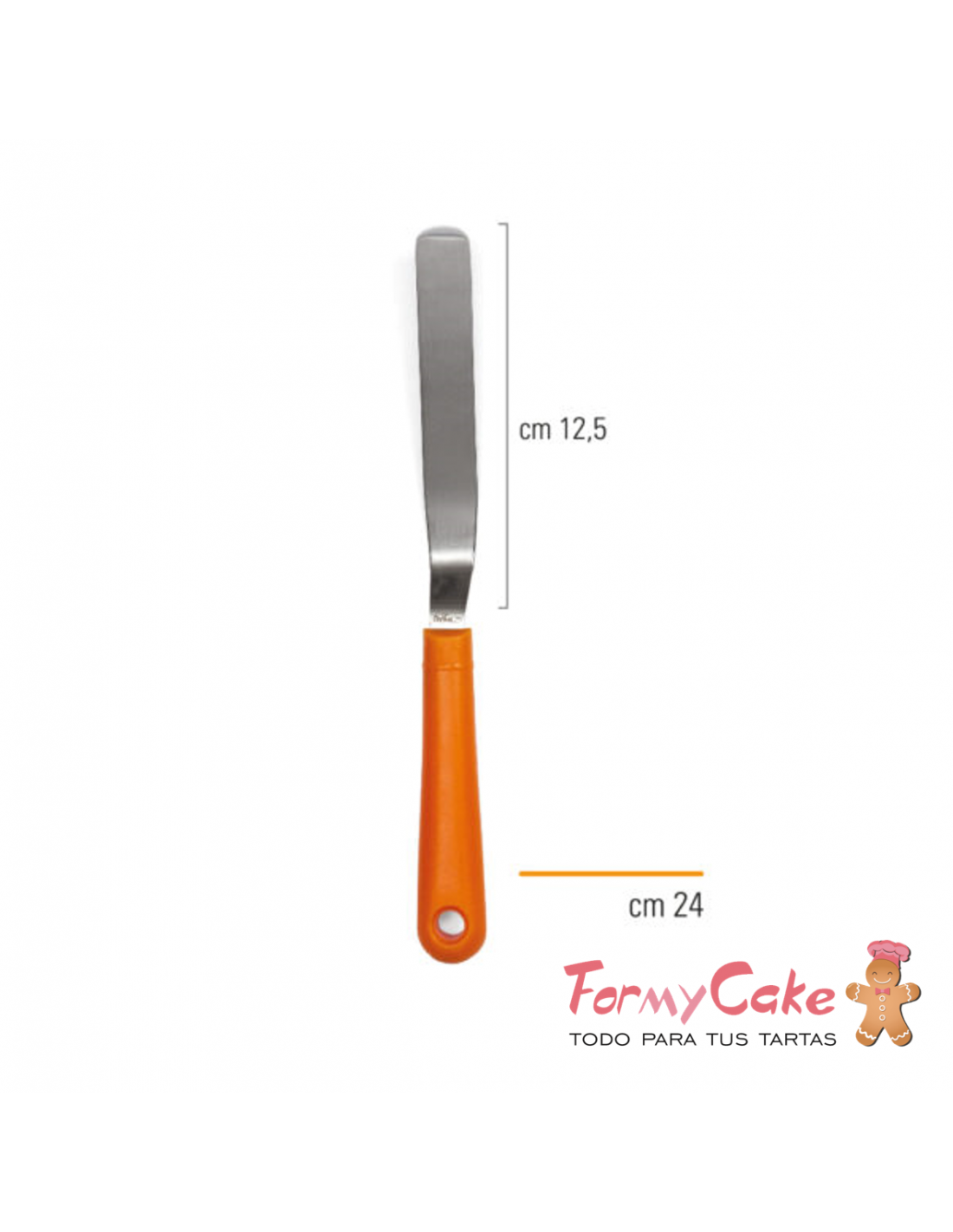 Espátulas angulares en acero inoxidable. Adecuado para mover pasteles y untar cremas y chocolate por los bordes. La forma angular extremadamente práctica le permite evitar el contacto de las manos con la superficie a decorar.