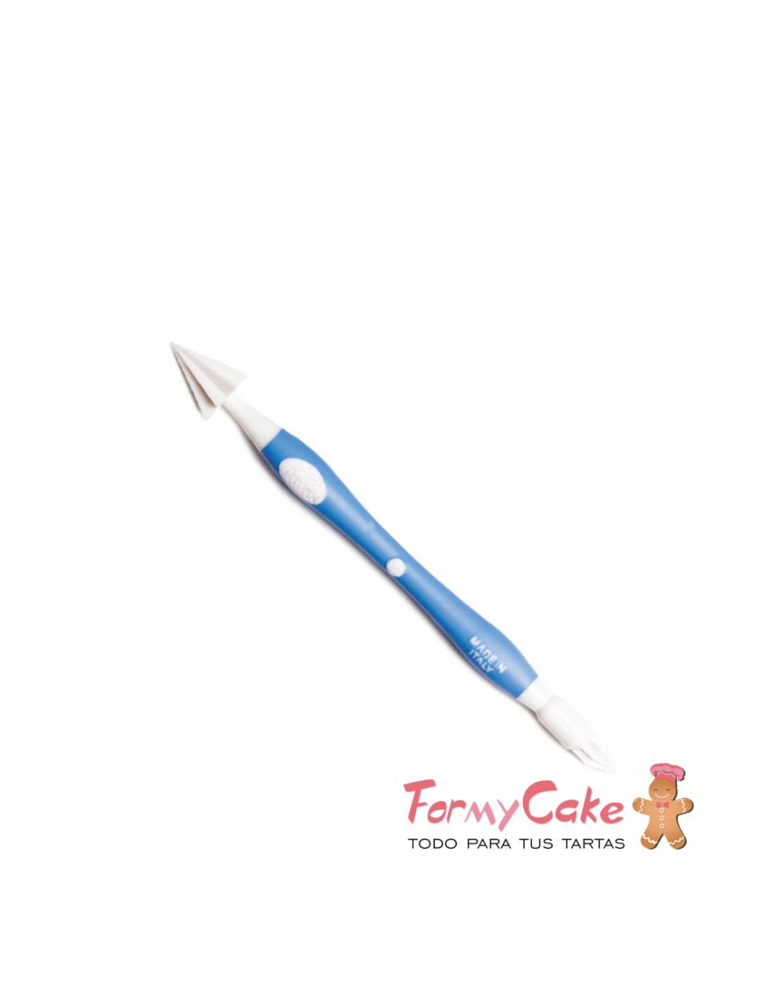 Herramienta de modelado realizada en un material de alta calidad con un extremo con forma de estrella en un lado y un extremo con forma cónica en el otro lado. Estas herramientas se utilizan, principalmente, para crear un centro para las flores, por lo tanto, para ahuecar flores como las fresias. La estrella asegura que si usted elabora las flores a mano, podrá distribuir las hojas uniformemente. También puede añadir las vetas de flores huecas.