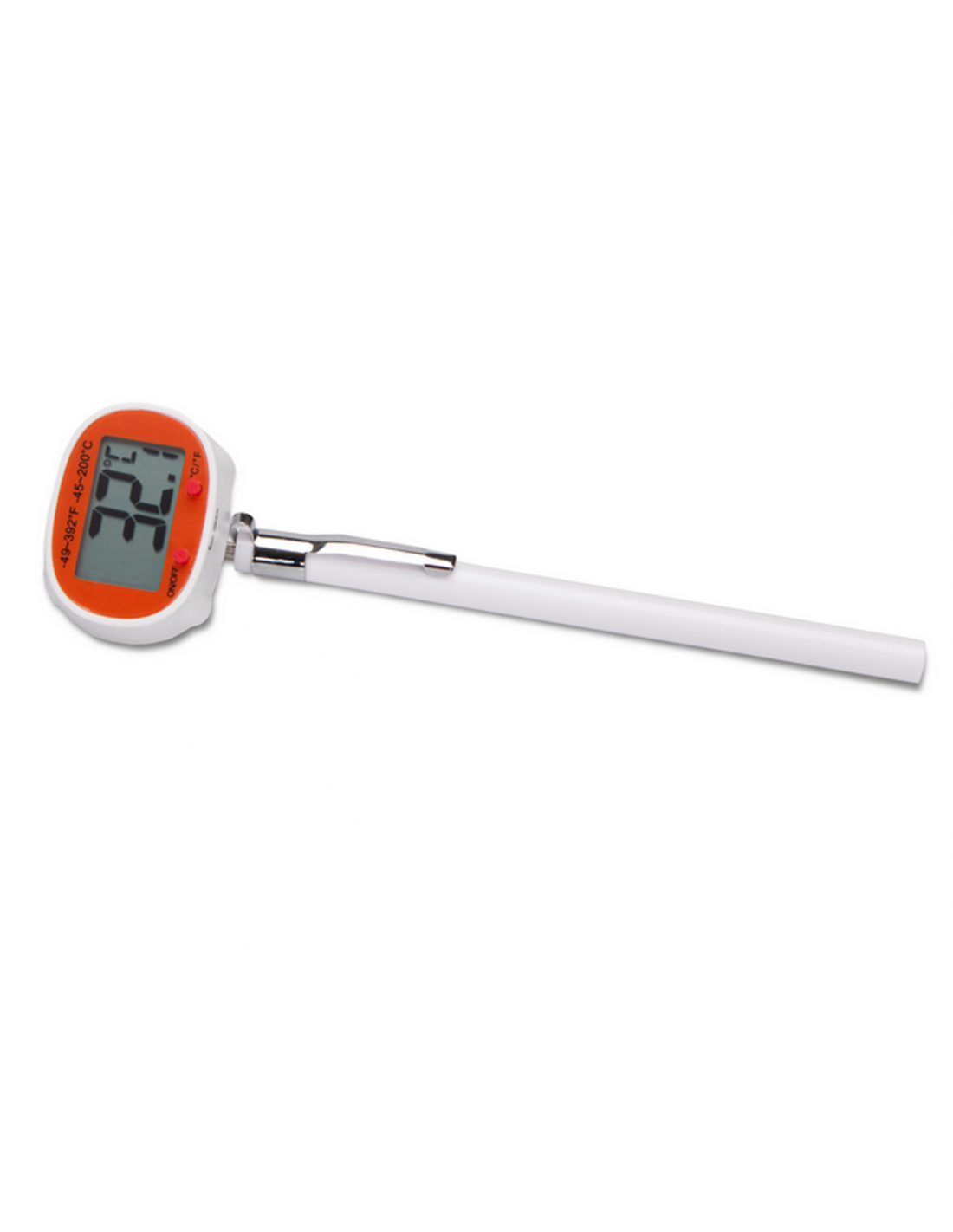 El termómetro está hecho de acero inoxidable y está libre de mercurio. Puedes cambiar fácilmente la temperatura entre ° C y ° F. Este termómetro digital tiene un rango de temperatura de -45 ° C a +200 ° C (-50 ° F a 392 ° F).