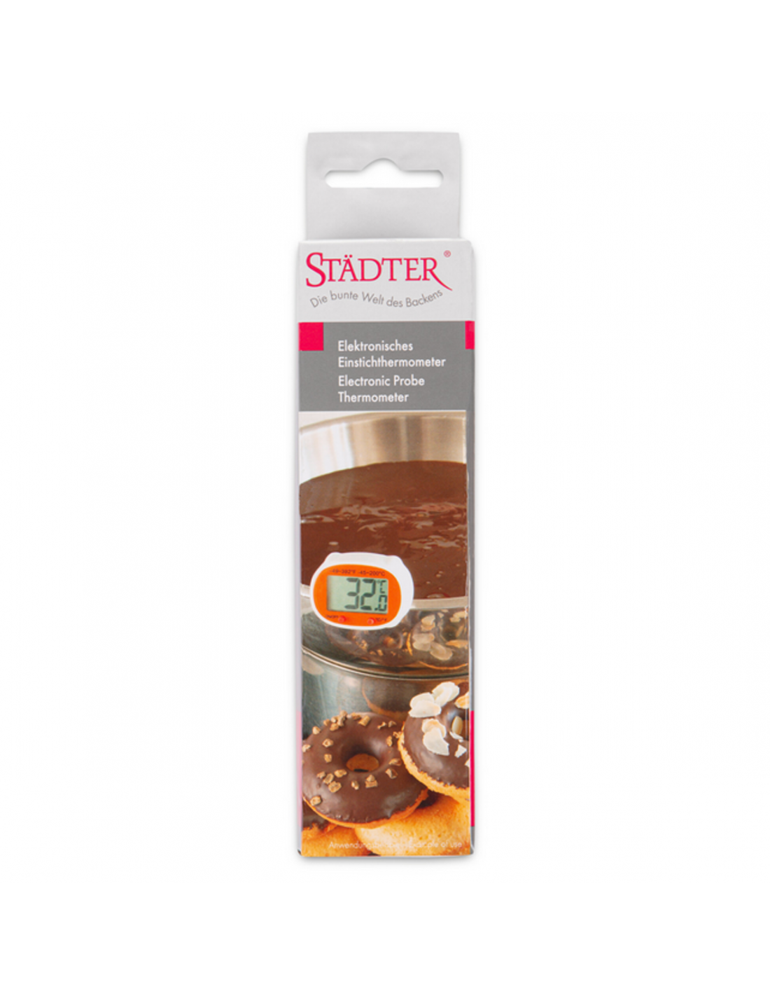 Preciso termómetro digital de Städter. Este termómetro es facilísimo de usar gracias a su gran pantalla digital de fácil lectura.