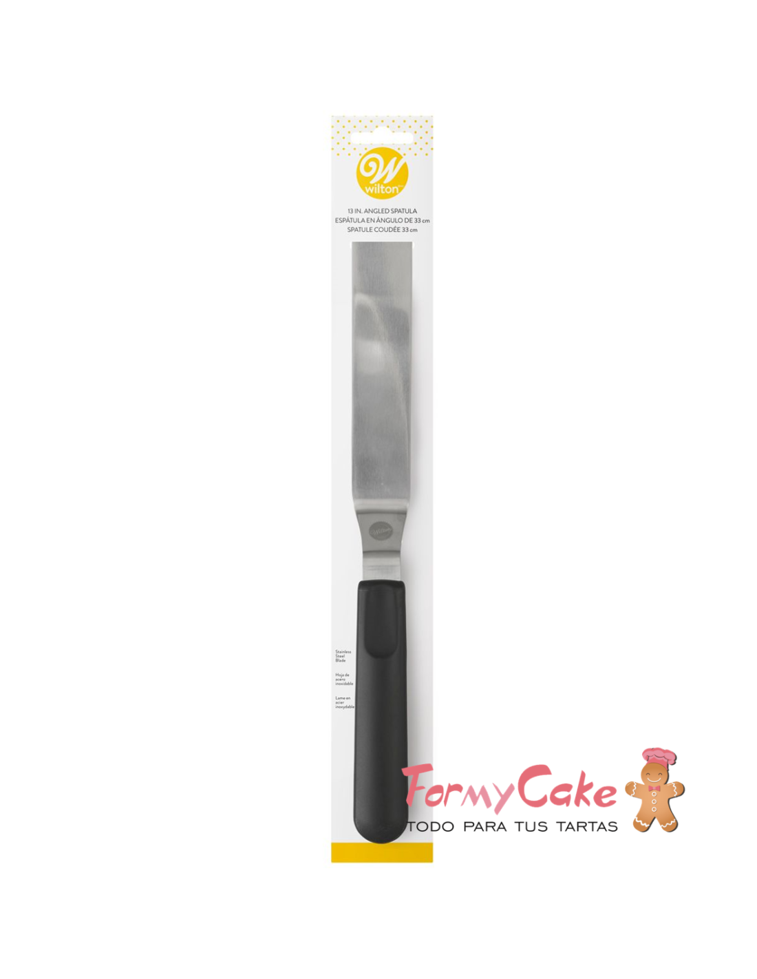 Espátula curvada con hoja flexible de acero inoxidable perfecta para extender el glaseado o crema.