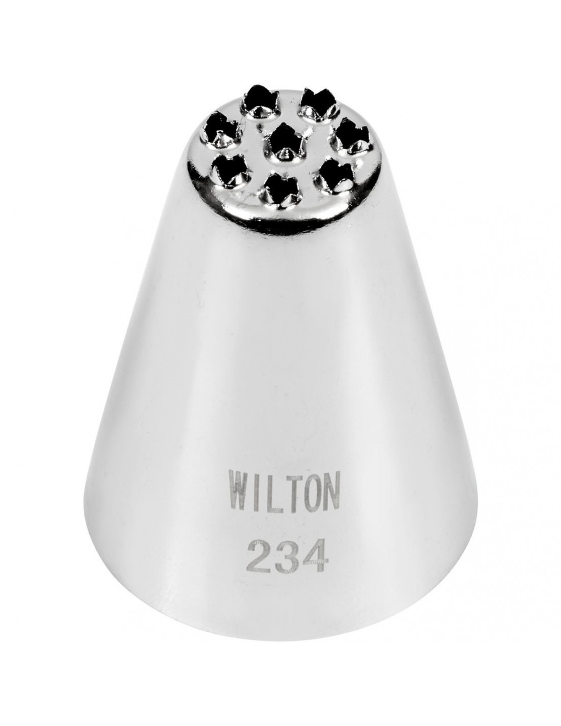 Crea líneas más largas para pelo, piel y césped con la Boquilla de Decoración Multiapertura de Wilton (Wilton Decorating Tip Multi Open #234). Esta boquilla es una variante entre las #2010 y la #233 de Wilton.