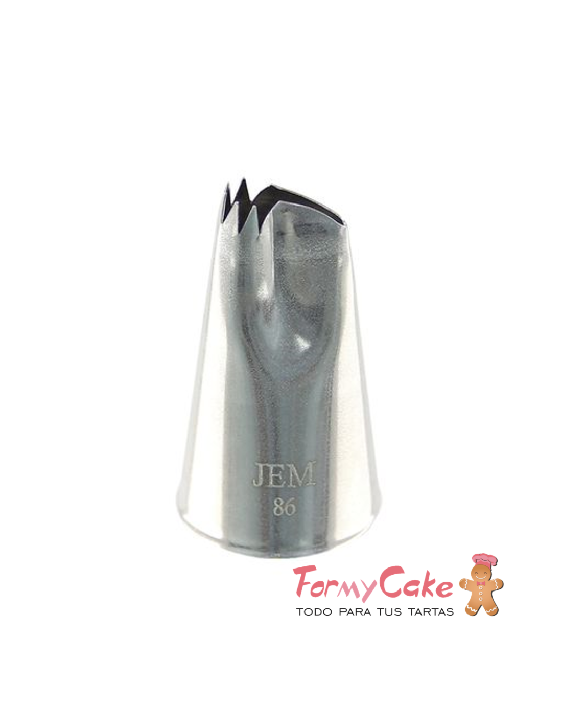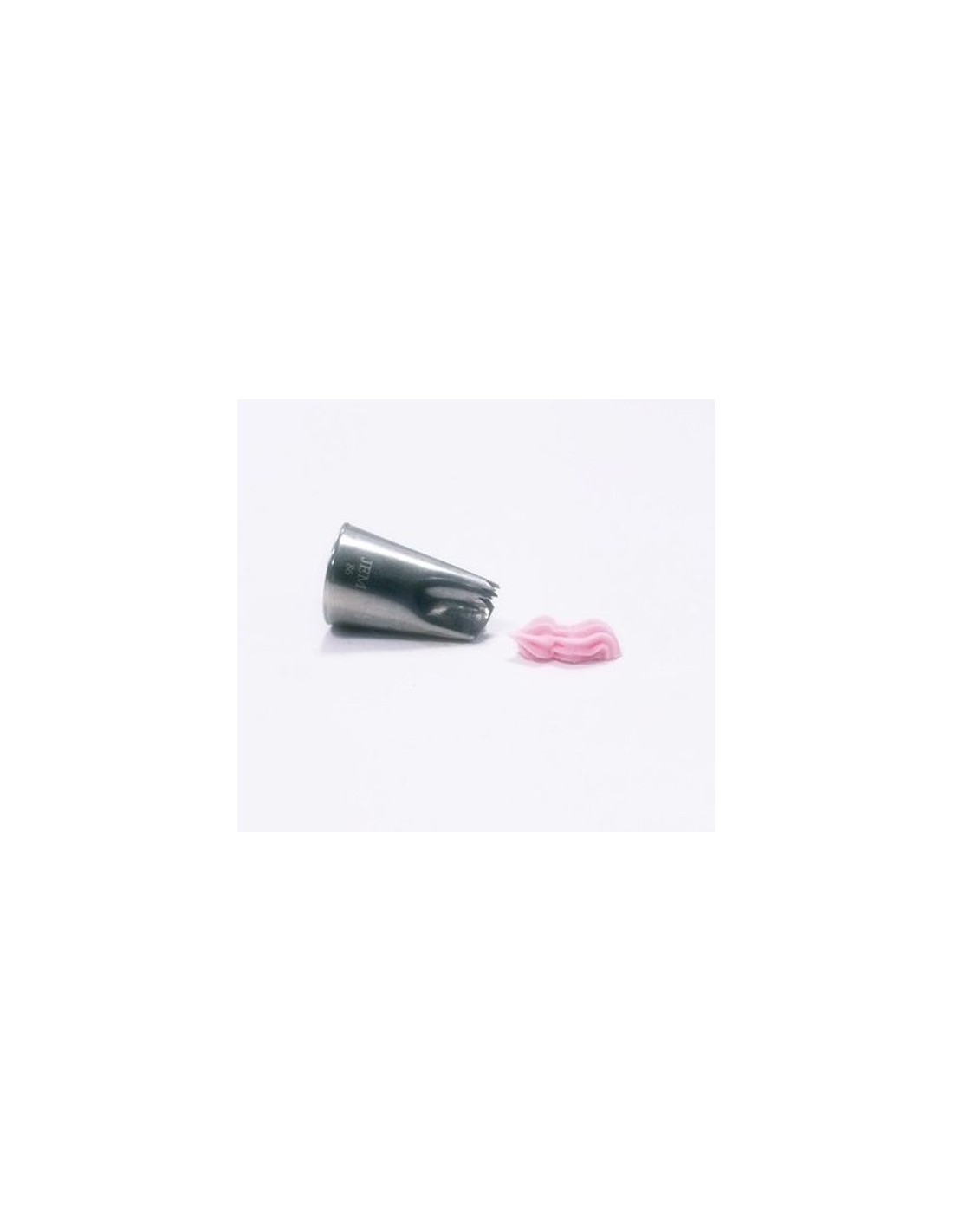 Boquillas de Volantes Serrados JEM nº 86 Ideal para sacar líneas de volantes serrados Tamaño : punta 1,7 x 10,1 mm diámetro de la base 18 mm altura 31 mm. Todas las boquillas son aptas para utilizarlas con mangas desechables y de tela. Realizadas en acero inoxidable de alta calidad sin soldaduras.