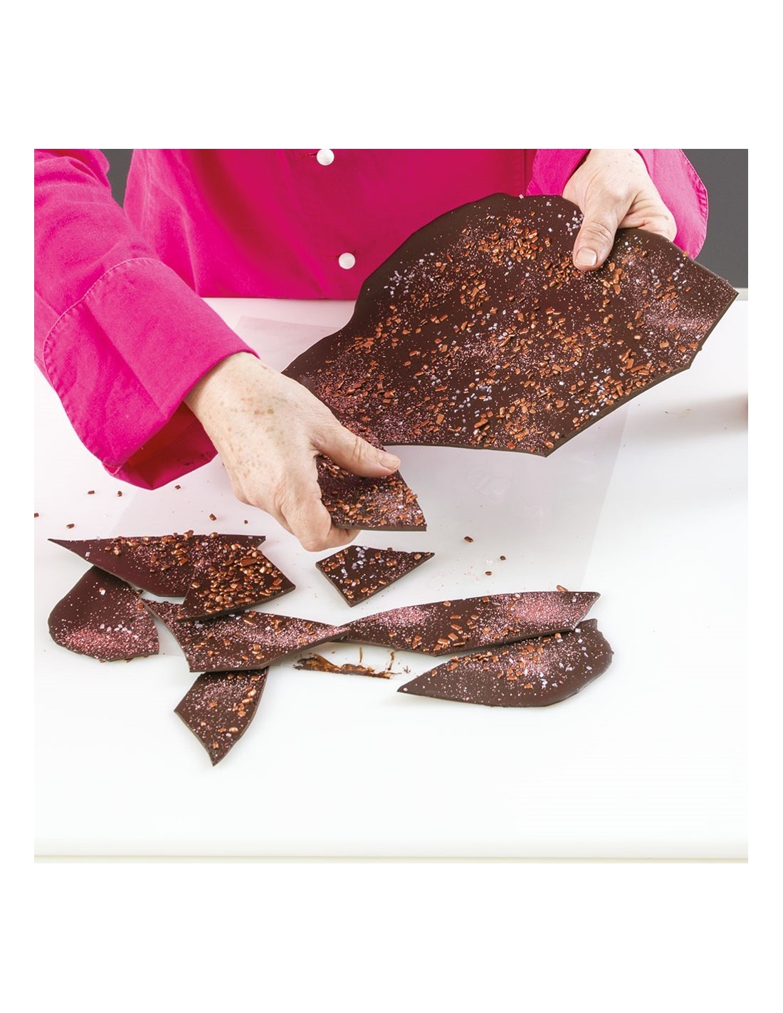 Hojas antiadherentes para las formas inox y los moldes desmontables, para realizar postres congelados y decoraciones de chocolate.