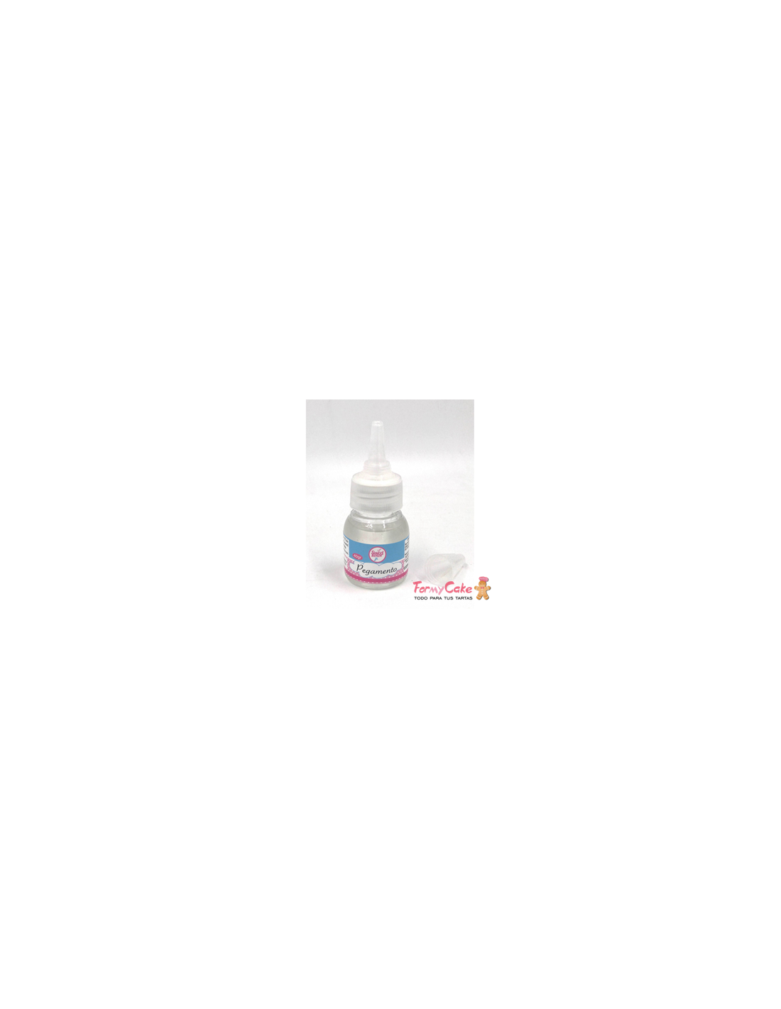 Pegamento comestible en formato de 40gr y en un bote presentado con canula para una perfecta dosificación.