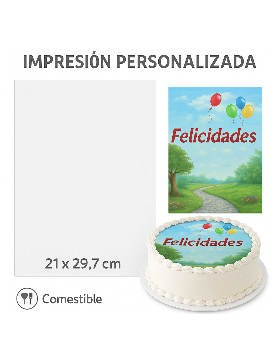 Impresión Comestible Personalizada en Papel de Azúcar A4 | Imagen, Foto o Diseño para Tartas