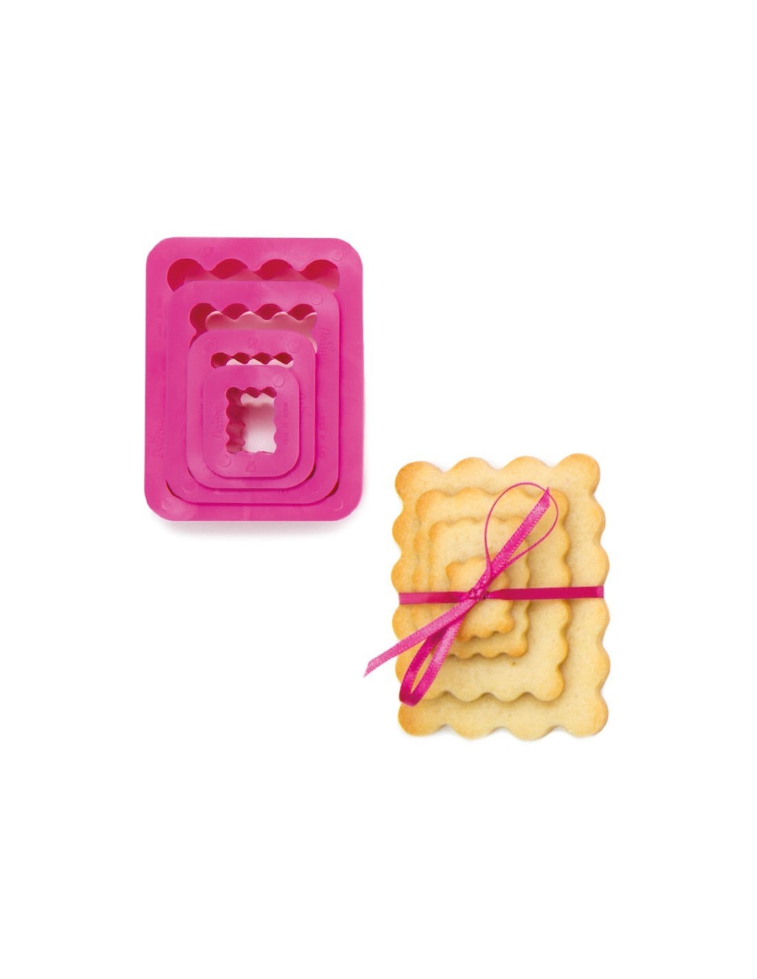 Set de 4 cortadores en forma de rectángulo rizado de diferentes tamaños para galletas, fondant...