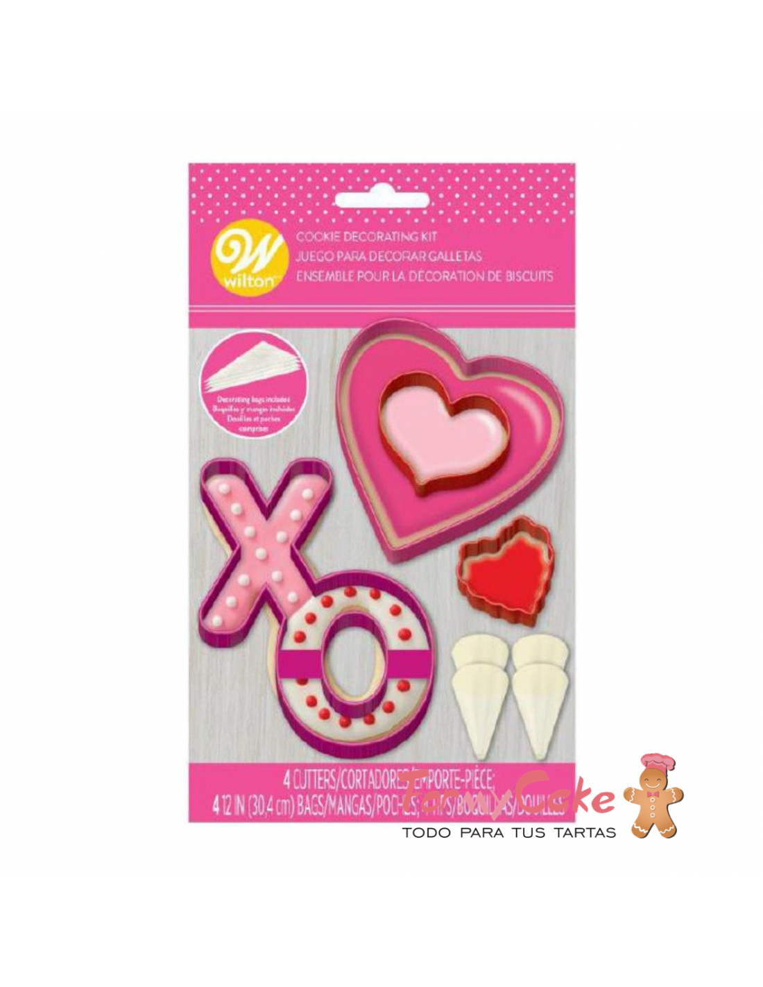 Este kit de decoración de galletas de Wilton contiene cuatro cortadores para que puedas hacer divertidas galletas en forma de corazón y con las letras 'XO'. También puedes usar estos cortadores de Wilton para hacer decoraciones con fondant o mazapán para el día de San Valentín o el día de la madre.