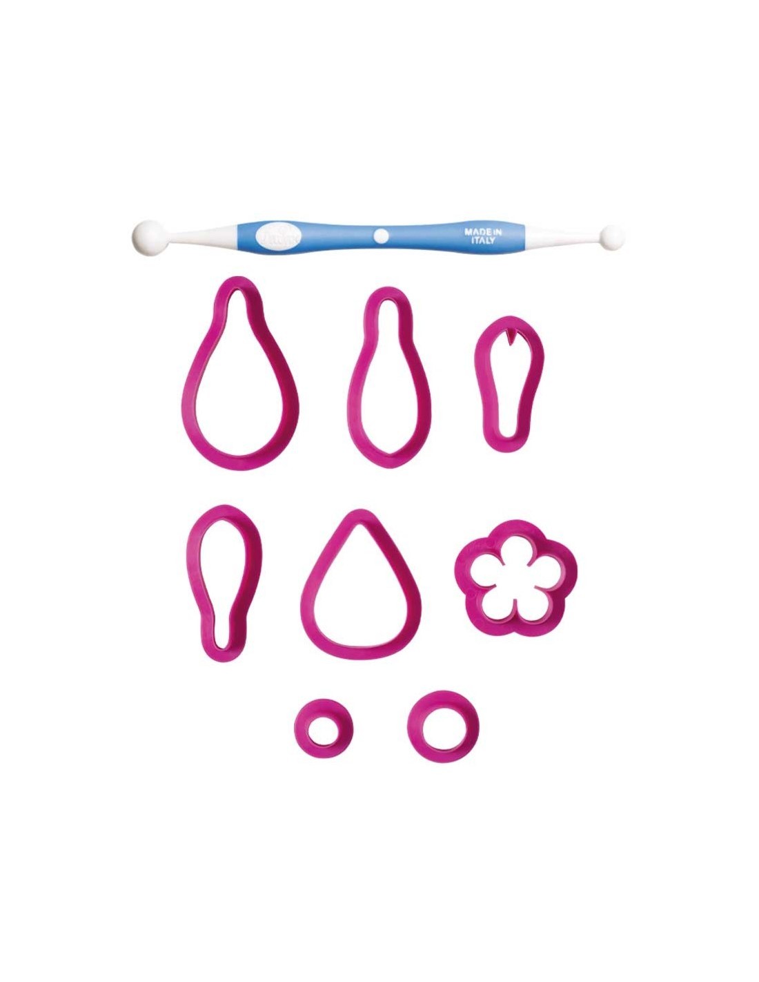 Un set de 8 cortadores de pastelería y 1 herramienta para un sinfín de creaciones. Decora pasteles, magdalenas y galletas con el kit cortador de masa y la herramienta para crear flores y decoraciones de pasta de modelar. Siga los consejos del folleto incluido en el kit para facilitar su uso. Ideal para hacer flores como rosas, margaritas, amapolas y muchas otras.