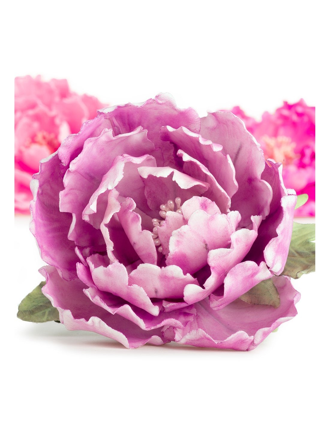 Conjunto de 7 cortadores para realizar peonías con fondant. 4 para pétalos y 3 para las hojas. Los cortadores son de plástico y en la parte trasera de la caja vienen las instrucciones para que aprendas el montaje de la flor.