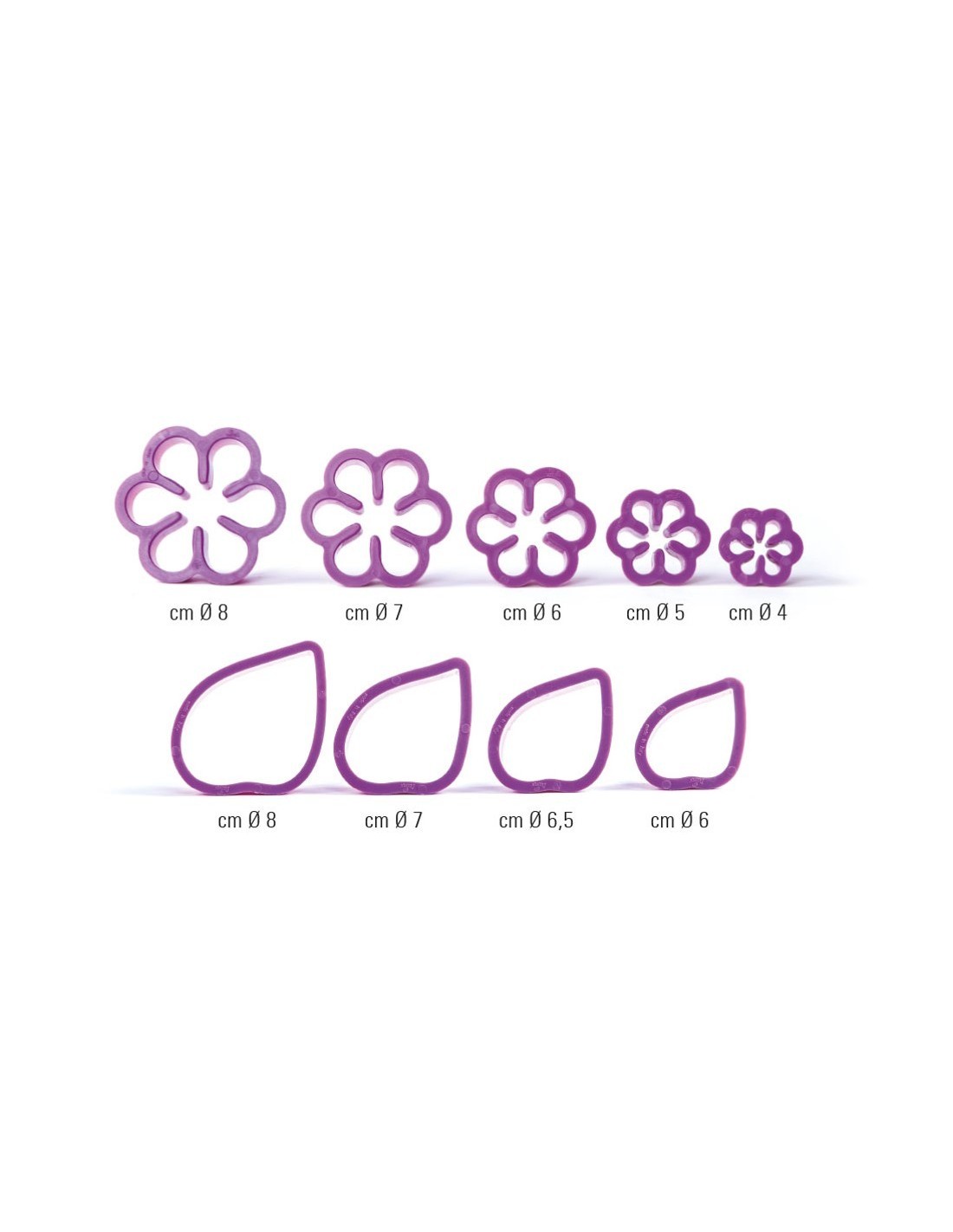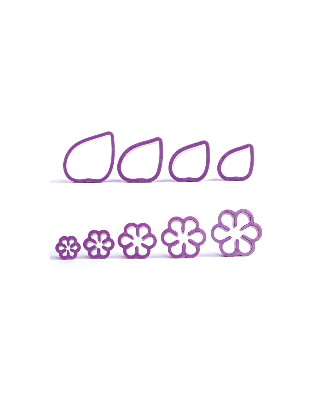 Consta de 5 cortadores para el capullo y 4 cortadores para el pétalo.