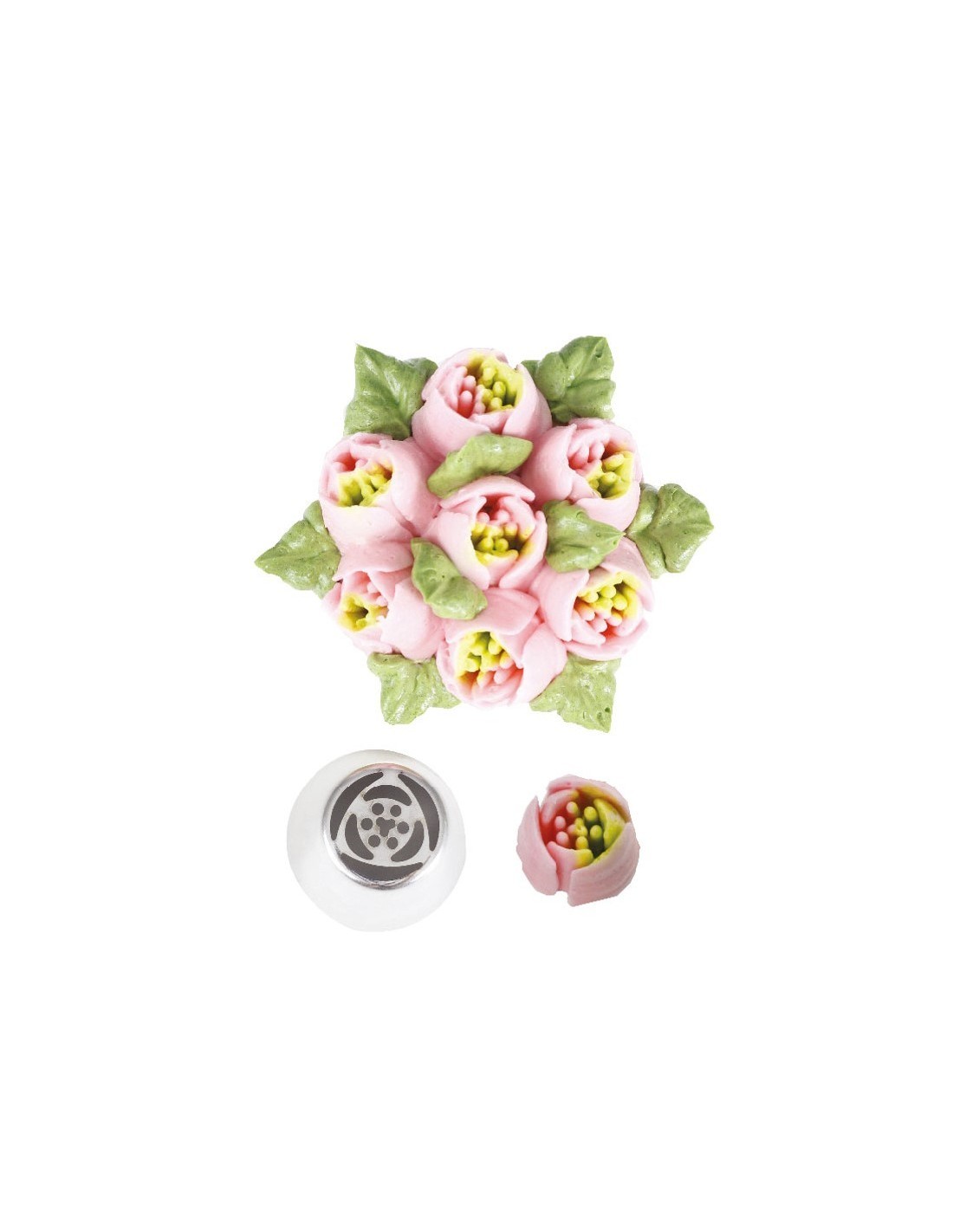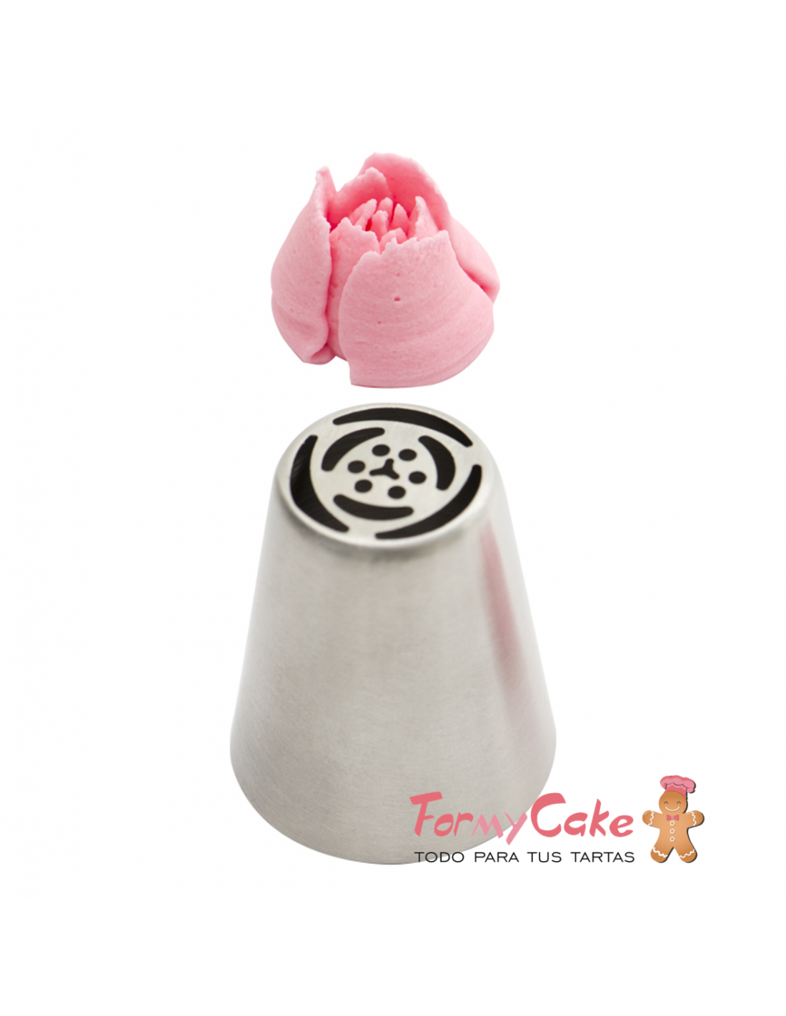 Conocidas como las boquillas rusas nos permiten crear flores de glasa o de buttercream de forma fácil y sencilla. Con estas boquillas rusas tan solo debes presionar sobre la manga pastelera con buttercream o glasa para obtener una fantástica flor. Para conseguir un efecto más real es aconsejable manchar la manga con un color diferente al del color de la flor que queramos conseguir.