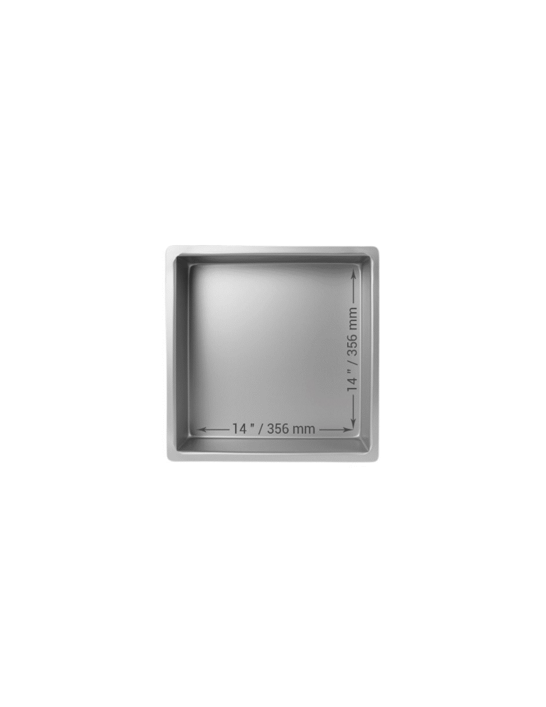 Elaborado con un grosor de pared uniforme y una estructura sin costuras que le proporciona un pastel de bordes rectos y lisos. Los moldes para pasteles PME están hechos de una forma fuerte y duradera de aluminio anodizado no reactivo que los hace fáciles de usar, limpios y resistentes. Dimensiones: 356 x 356 mm (14 x 14") Para obtener los mejores resultados, utilice la Cinta de Horneado de Nivelación PME.