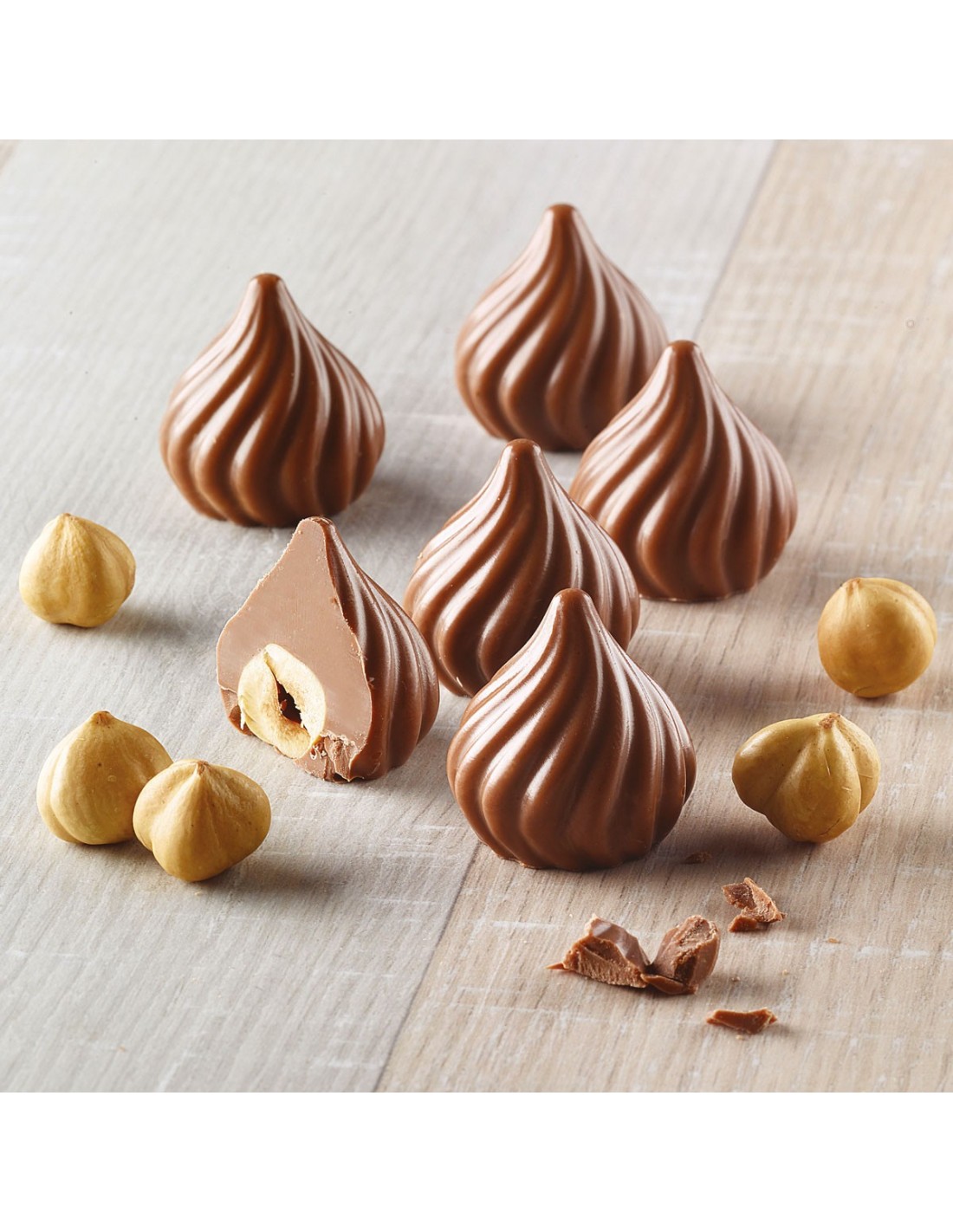 Haz bonitos pralinés y bombones rellenos con este molde de chocolate flexible de Silikomart. Este molde contiene 15 cavidades en forma de llama para hacer bombones. El envase contiene recetas útiles para crear los bombones perfectos.