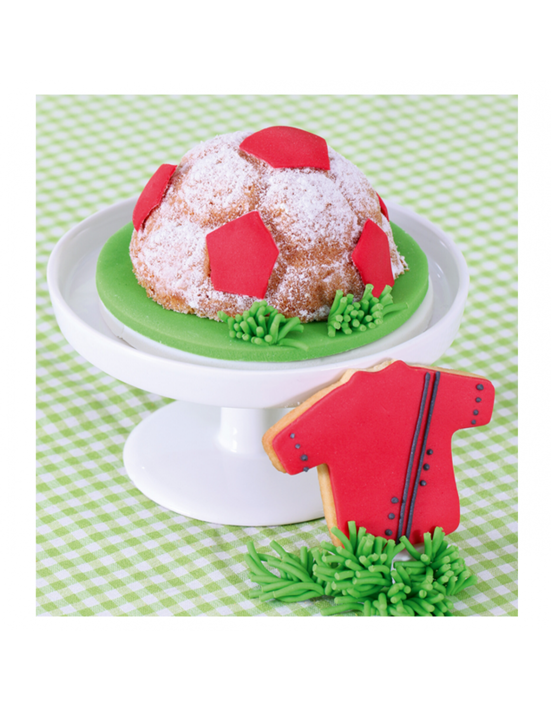 Haz pequeños bizcochos en forma de balón de futbol.