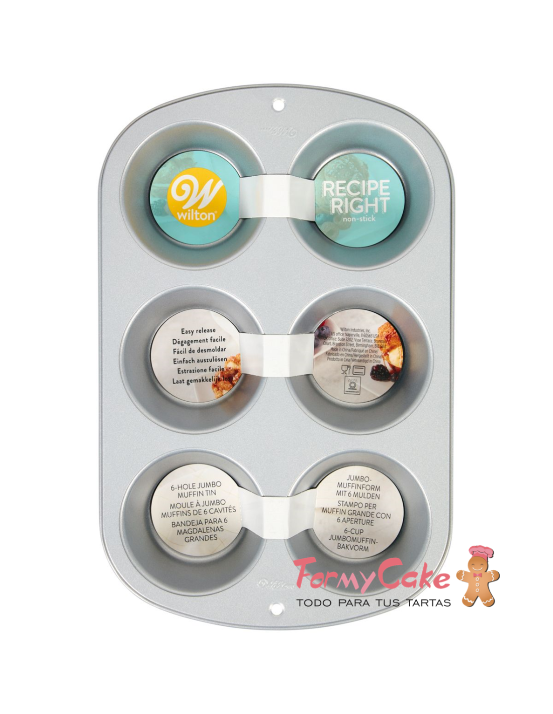 Molde de aluminio ideal, de una sola pieza. Apto para los moldes de papel para muffins jumbo. Con el molde para hornear puede elaborar 6 muffins.