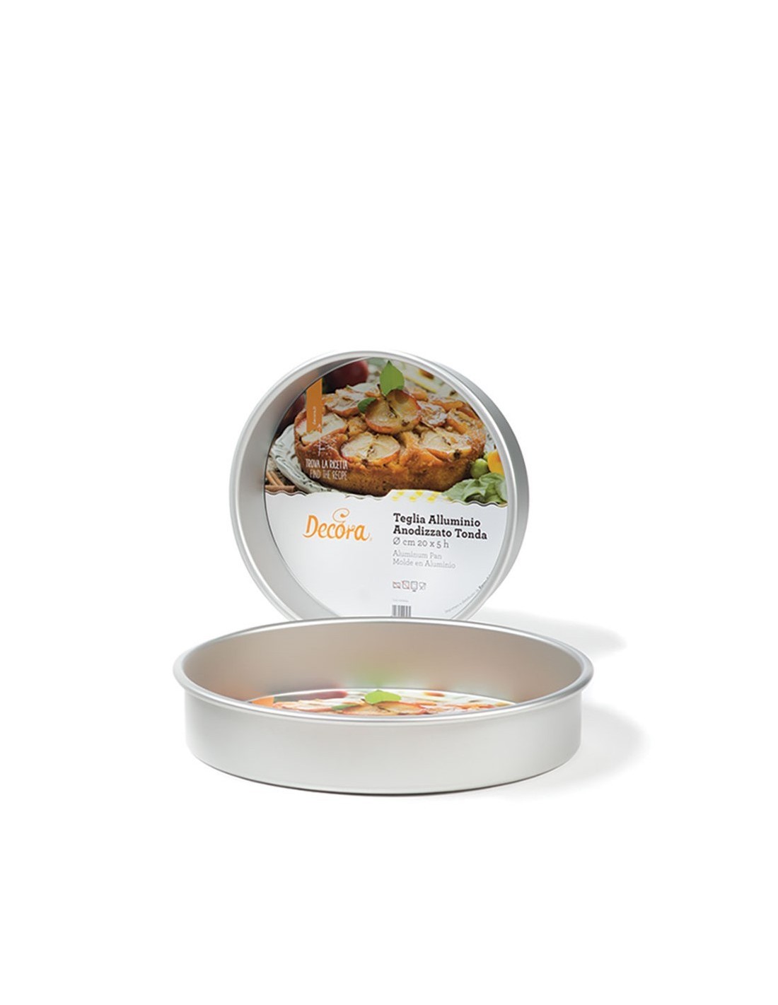 Molde metálico de aluminio anodizado de la marca Decora de 25cm de diámetro y 5cm de altura. Ideal para la cocción de nuestros bizcochos en finas capas, conocidos también como layer cakes. Al ser bizcochos más bajitos la cocción se realiza de manera más uniforme sin quemarse por fuera y evitando que se quede crudo por dentro.