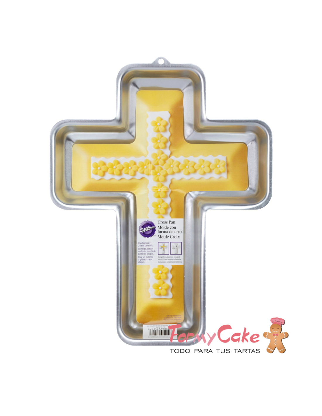 Molde para hornear de aluminio con forma de cruz. Las esquinas redondeadas, lo hacen ideal para el revestimiento con fondant o mazapán. Fantástico para fiestas de Primera Comunión, Bautizo o de Confirmación!