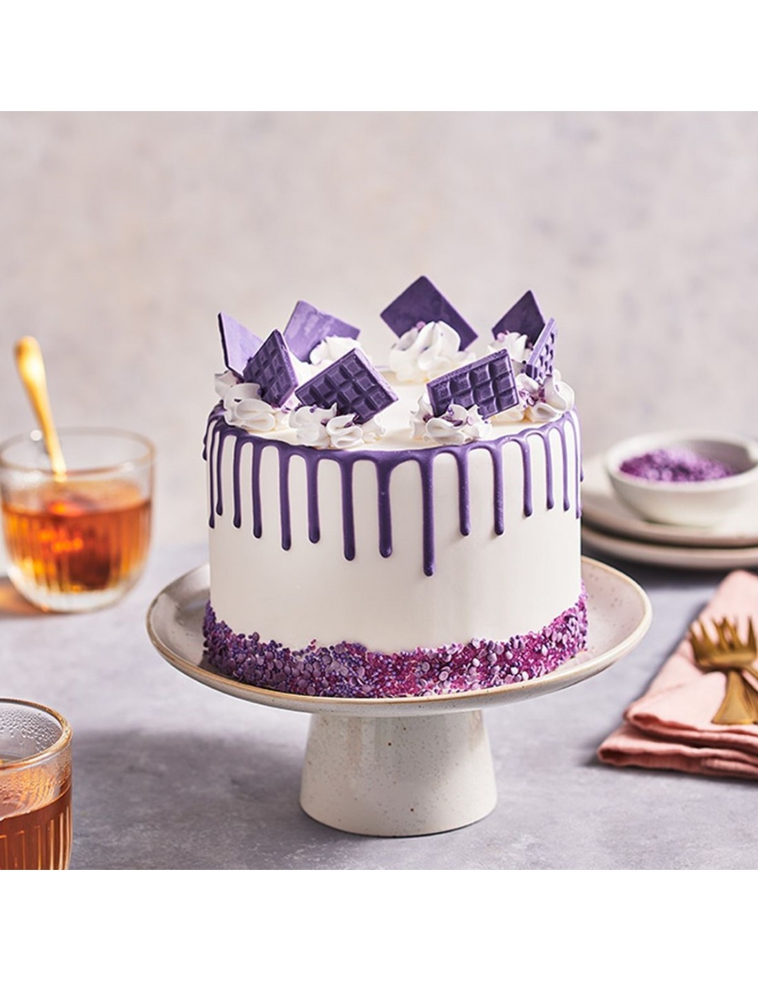 Hacer una drip cake nunca ha sido tan fácil como ahora con el Choco Drip morado de FunCakes