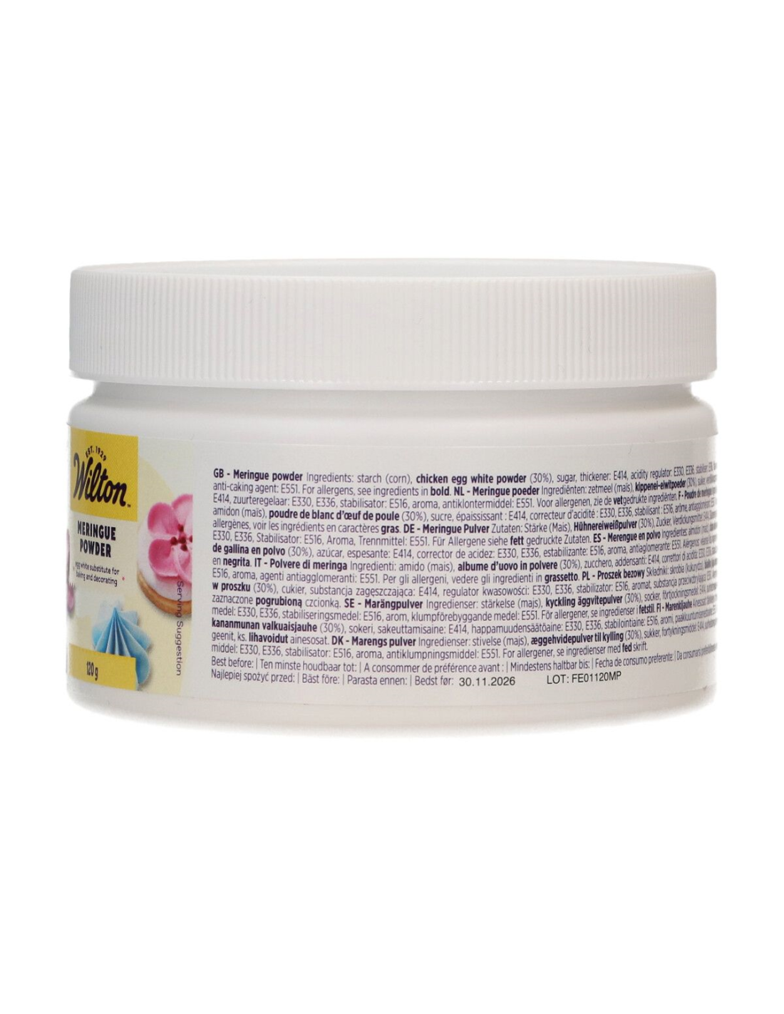 Con Wilton Meringue Powder 120g, puede hornear con confianza en todo momento, logrando acabados ligeros, esponjosos e impecables.