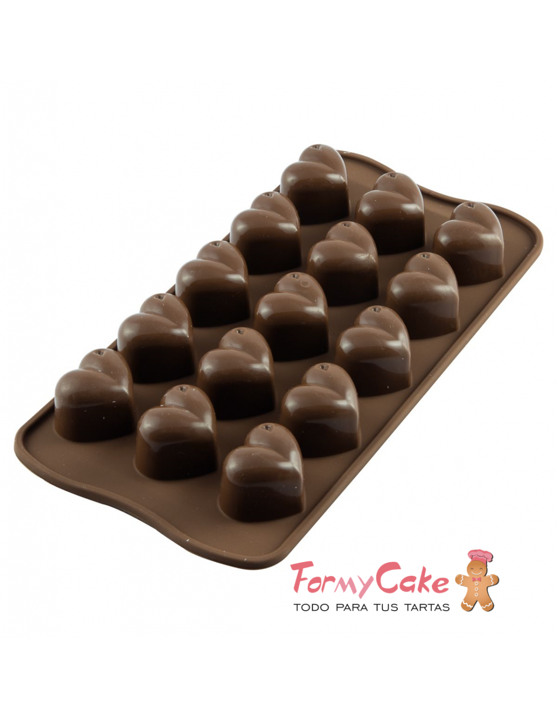 Haz hermosos corazones de chocolate con este práctico molde de silicona flexible de Silikomart. Con este molde de Monamour puedes hacer 15 bombones en forma de corazón. El paquete contiene recetas útiles para crear los bombones perfectos.