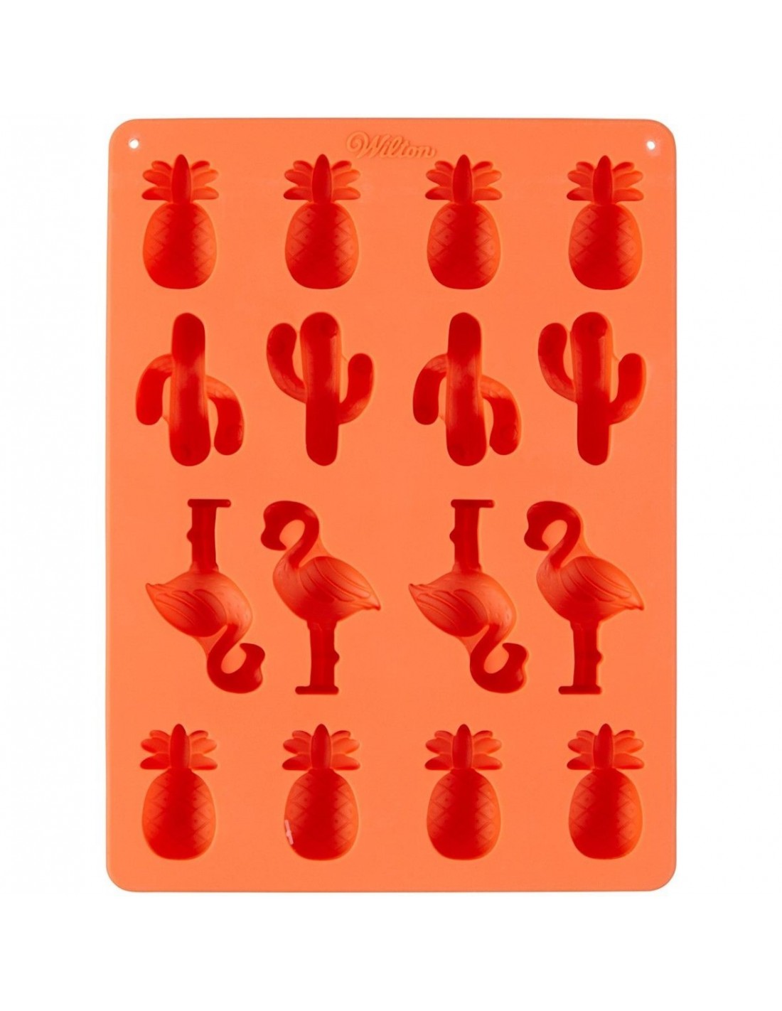 Este molde de silicona de Wilton (Silicone Candy Mold -Pineapple/Cactus/Flamingo-) es perfecto para una fiesta tropical. Con este molde podrás hacer piñas, cactus y flamencos de chocolate, fondant Candy Melts, fondant, mazapán y mucho más. Los toppers quedarán perfectos en tus pasteles tropicales, cupcakes y otros dulces.