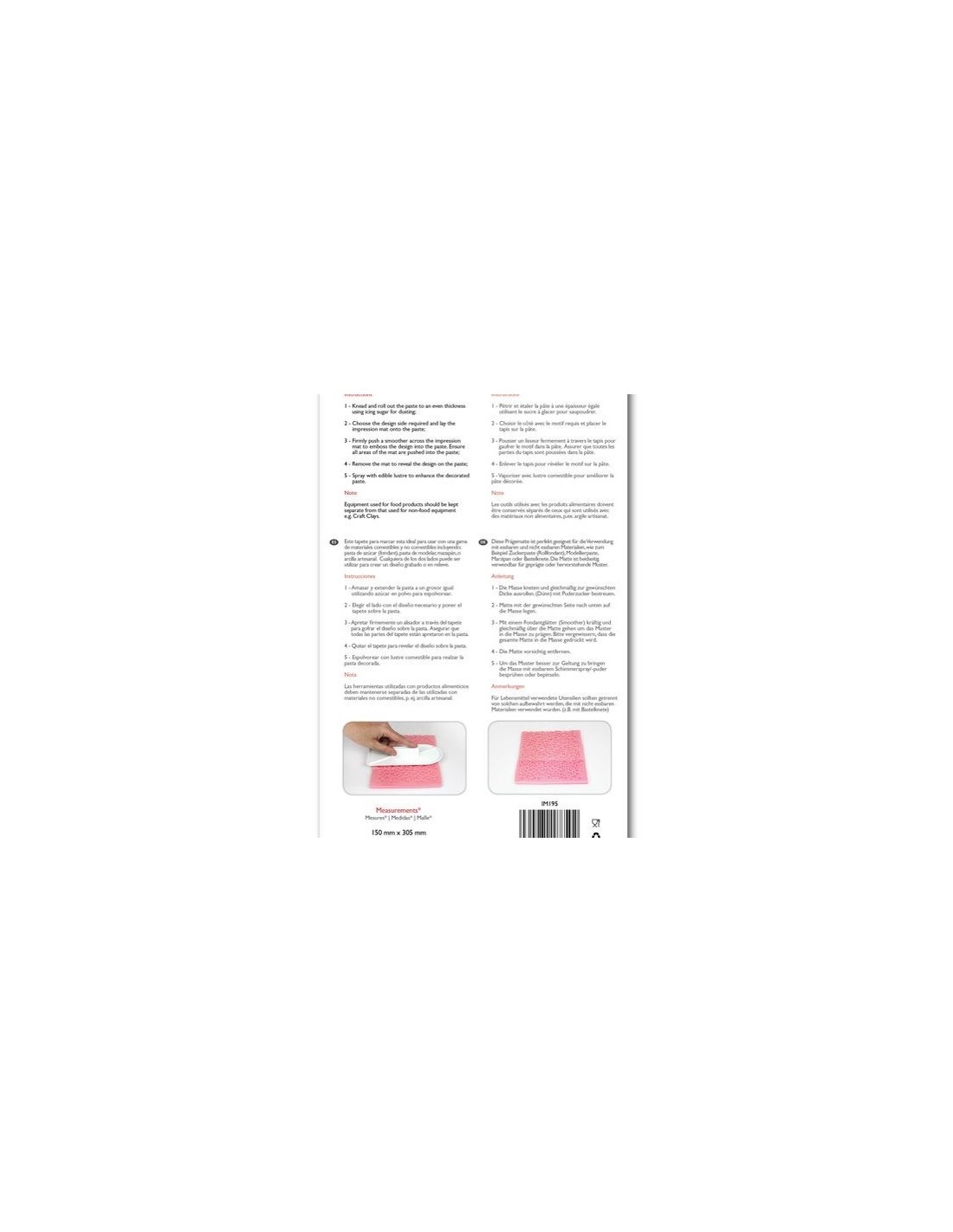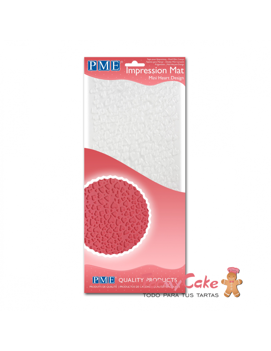 Este tapete para impresión de PME (PME Impression Mat Mini Heart) es ideal para utilizarlo con todo tipo de materiales comestibles, como: pasta de azúc ar (fondant), pasta de modelar (pasta ed goma) o mazapán. Puedes crear una gran variedad de diseños de tartas con este tapete. Es reversible para bien dar un efecto en relieve o grabado.