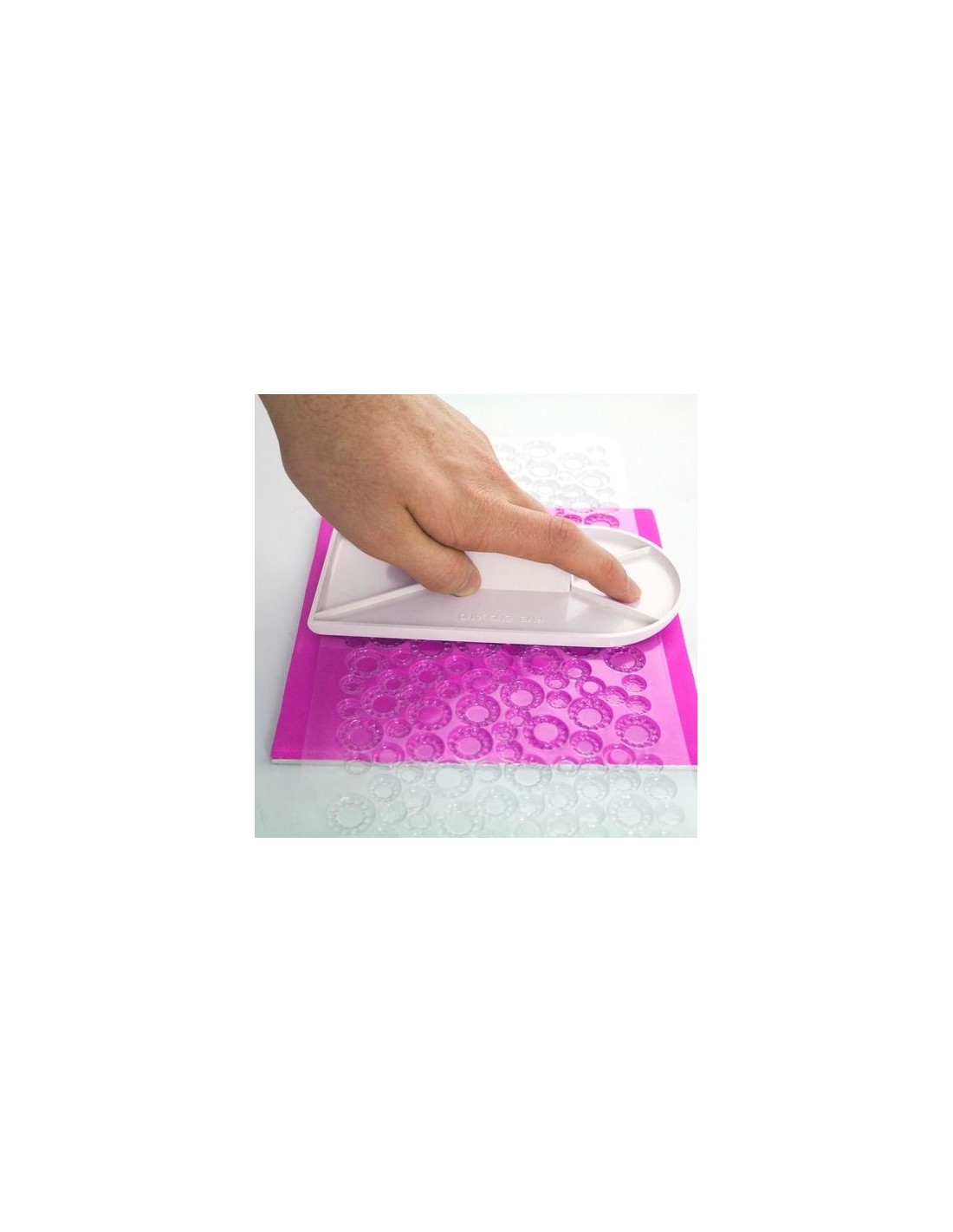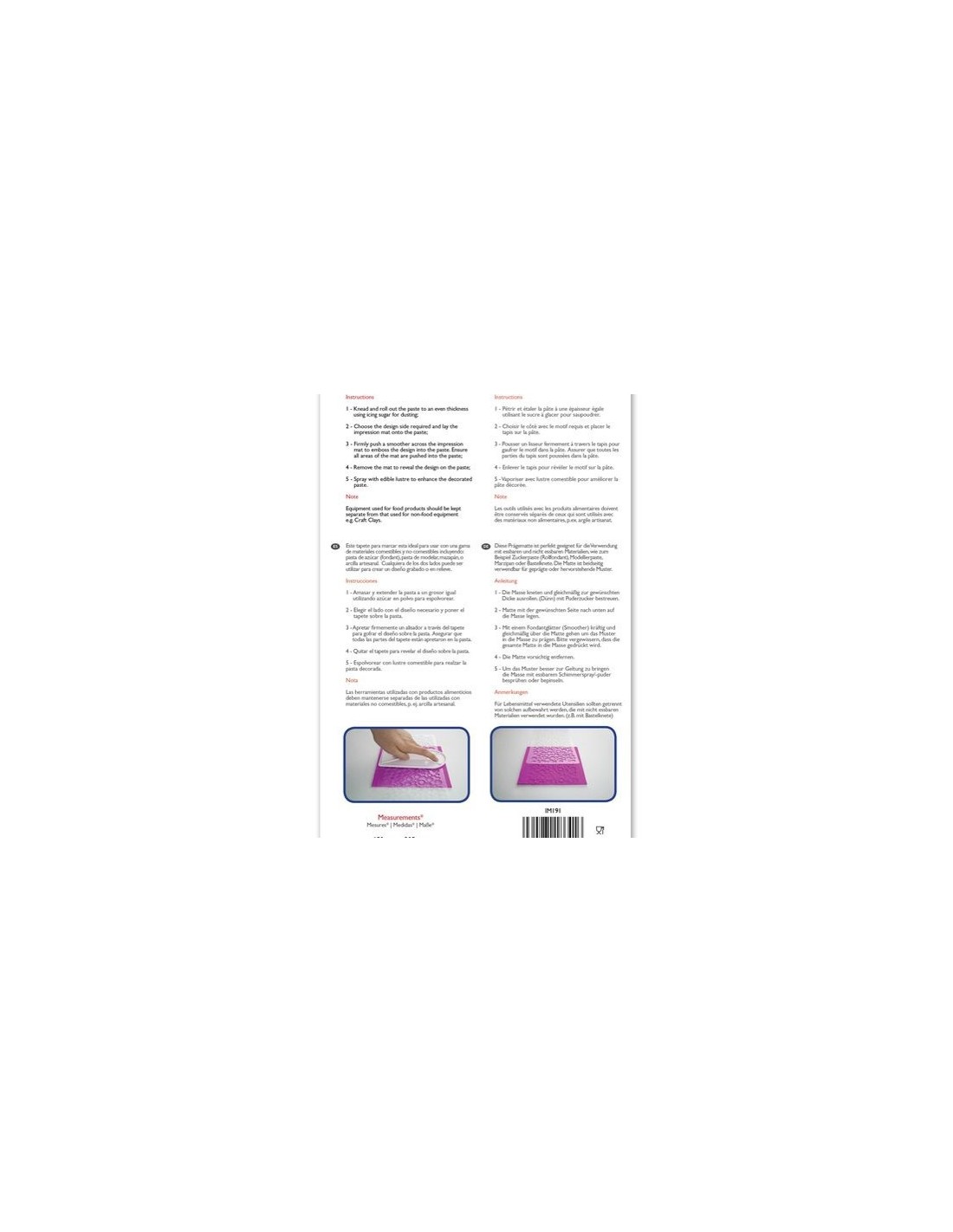 El tapete para impresión de PME te soluciona de una manera sencilla un diseño de lunares en cualquier pasta. Este tapete de impresión es ideal para su uso con una amplia gama de materiales comestibles incluyendo: pasta de azúcar (fondant), pasta de modelar (pasta de goma) o el mazapán. Se consigue una impresión con figuras de remolino muy bonitas y se pueden utilizar para un montón de tartas o cupcakes diferentes. Además ambas caras se pueden utilizar para conseguir diseños diferentes.