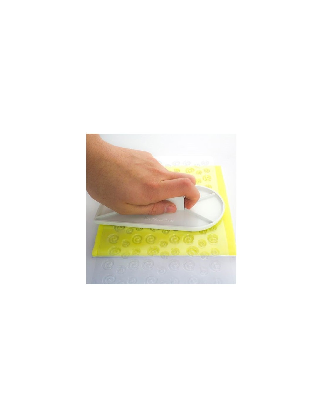 Instrucciones de uso: Amasar y extender la pasta al grosor deseado. Es recomendable engrasar el tapete con un poco de manteca vegetal Crisco o espolvorearlo con azúcar en polvo. Elegir el lado con el diseño deseado y poner el tapete sobre la pasta de azúcar. Apretar firmemente con una paleta alisadora a través del fondant para marcar el diseño sobre la pasta de azúcar.