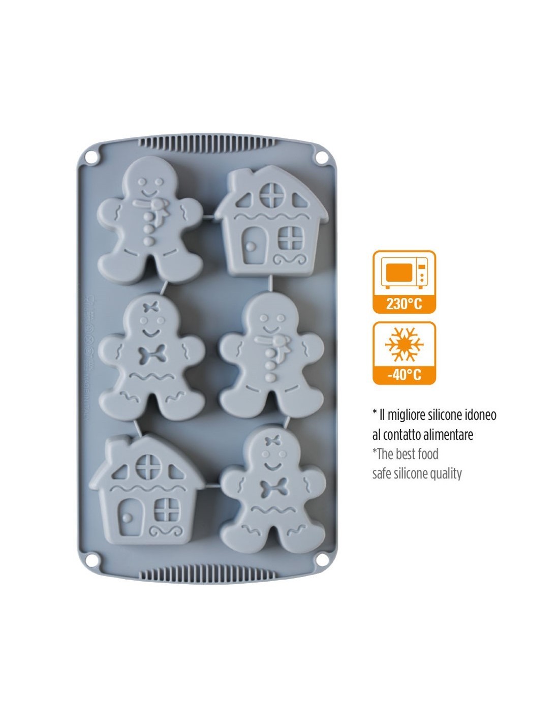 Molde de silicona * para preparaciones dulces y saladas a base de 100% Silicona Platino *. Resiste perfectamente la congelación y la cocción. No altera el sabor de los alimentos. Lavable y reutilizable. Apto para microondas y resistente hasta -40 ° C + 230 ° C. * La mejor silicona apta para el contacto con alimentos.