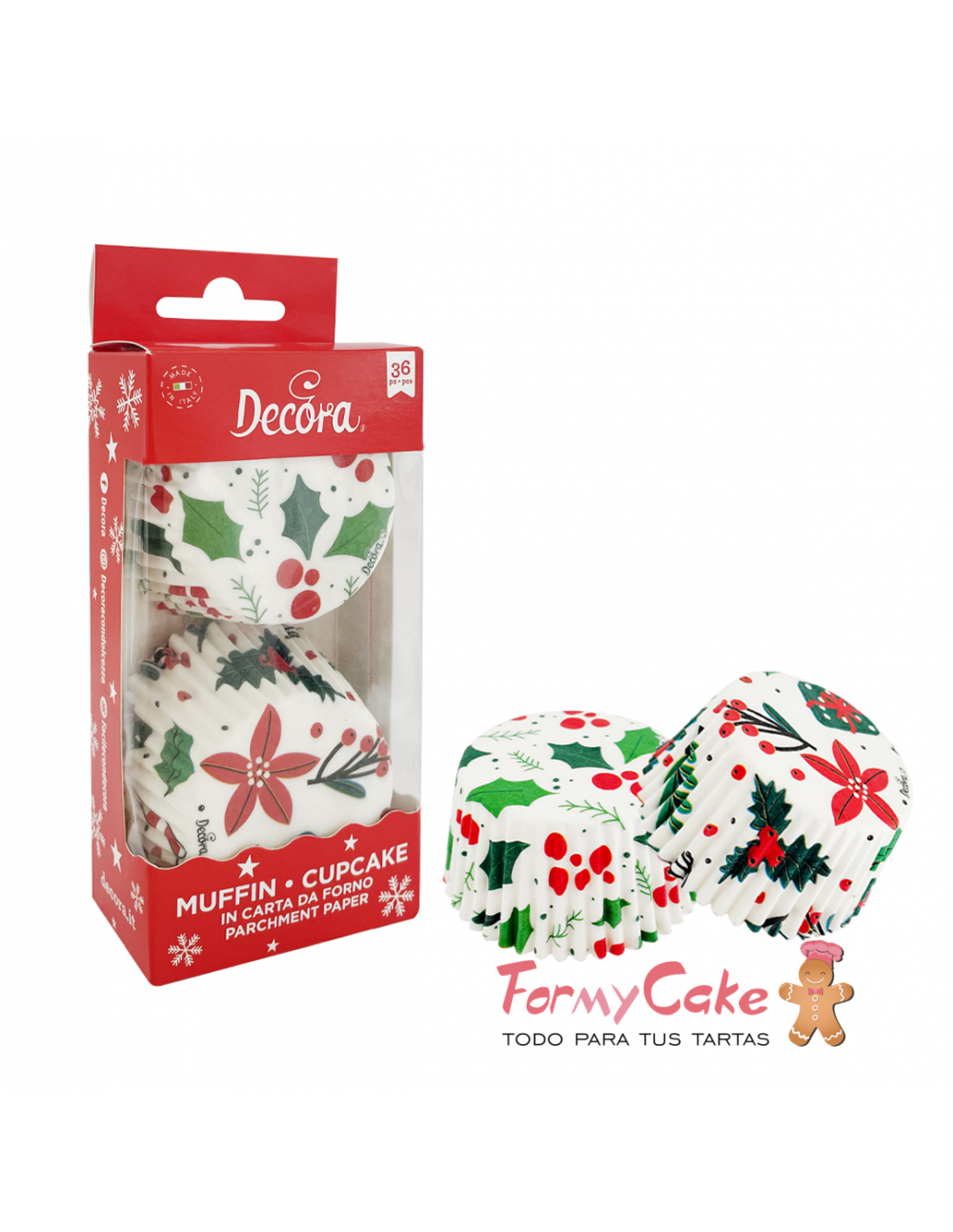 Prepara tus cupcakes con estas capsulas de papel con motivo del flores navideñas de la marca Decora Italia. Para hornear, presentar y dar magdalenas y dulces. Resistente hasta 220 ° C. En papel de horno. Envasado en blíster.