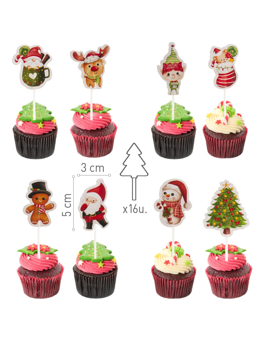 Dulces dibujos en tonalidades de acuarela ideales para tus postres navideños. Diferentes personajes cada uno más entrañable: Papá Noel, muñeco de jengibre, elfo, gnomo, reno, muñeco de nieve, árbol de navidad, y el calcetín de la chimenea.