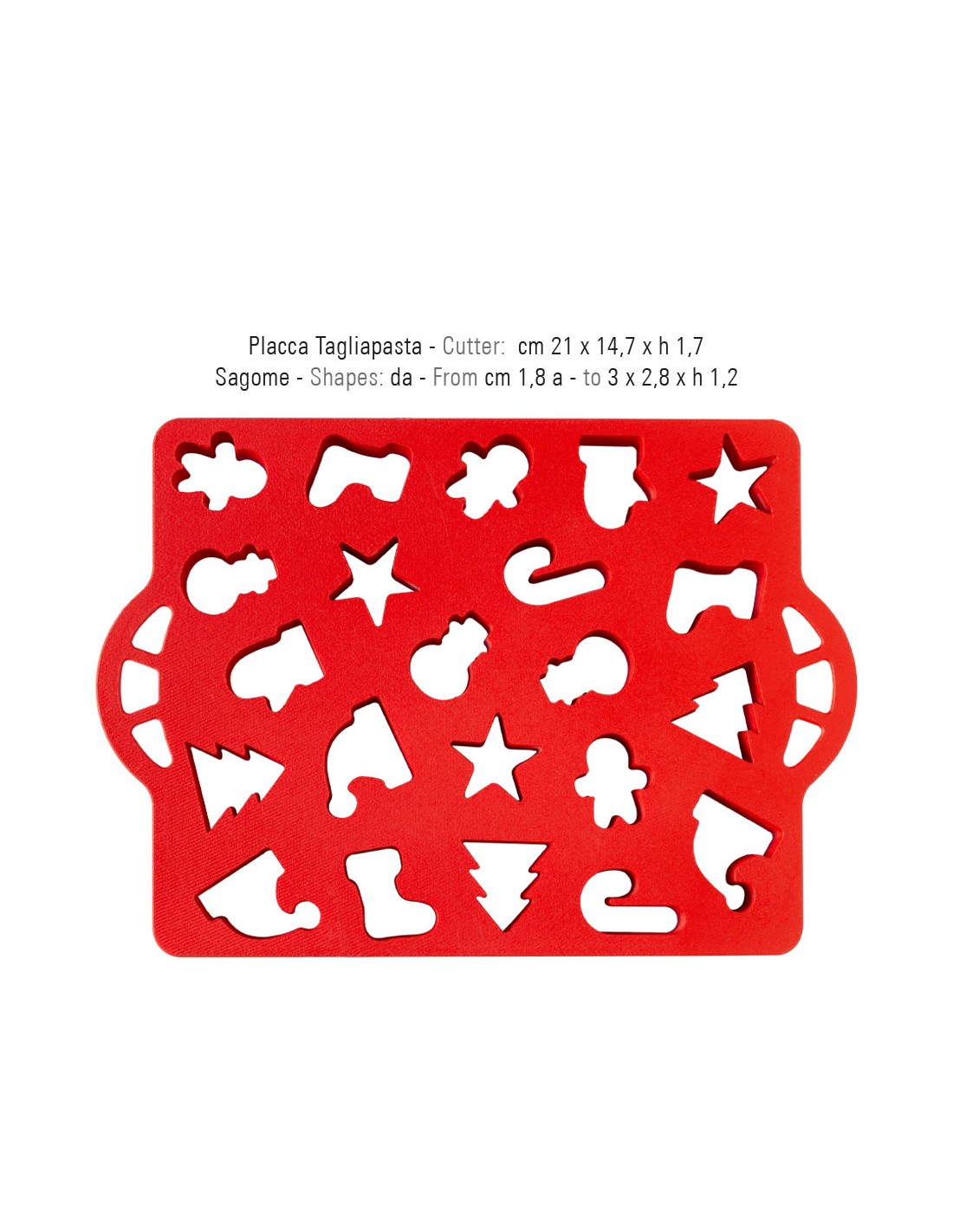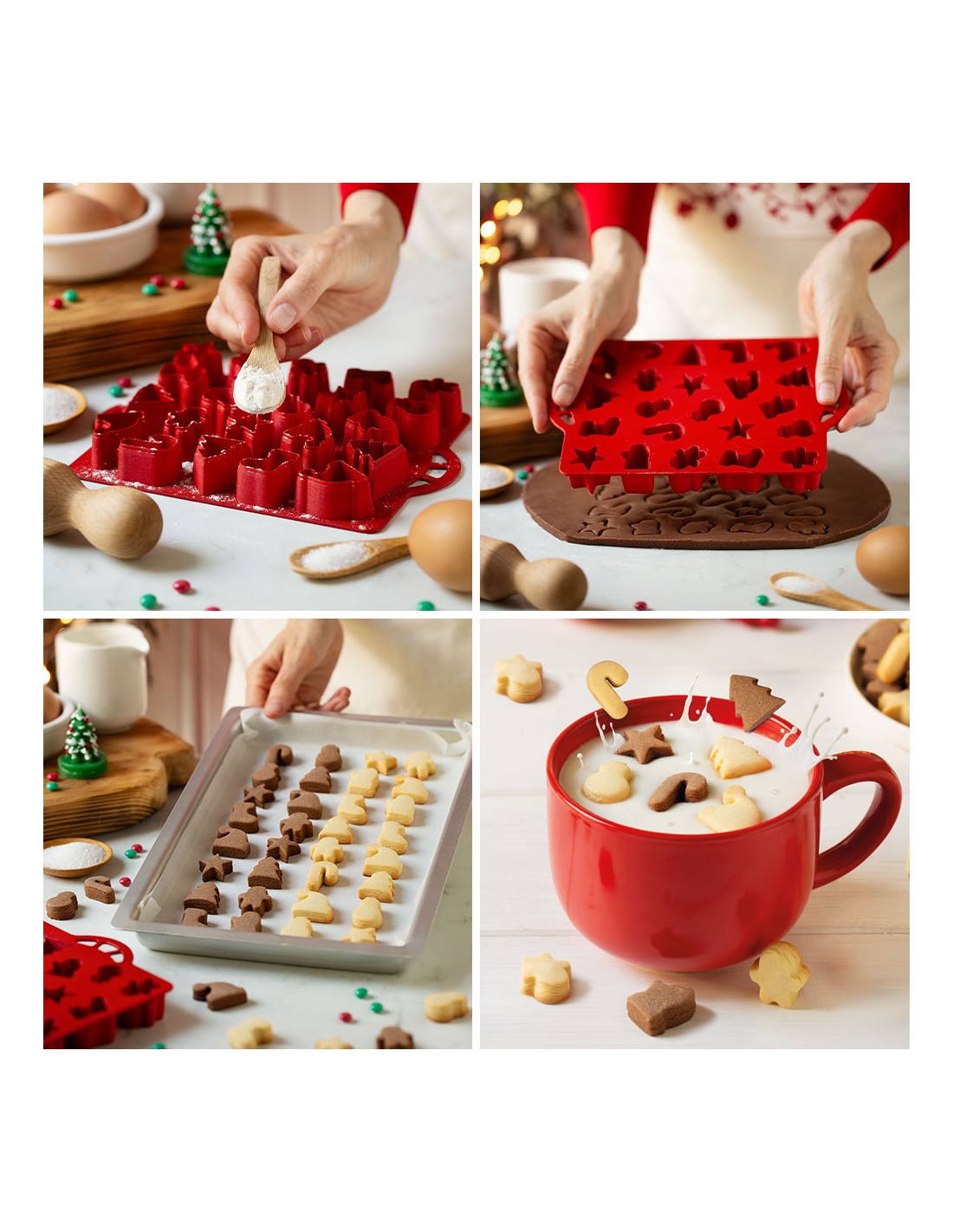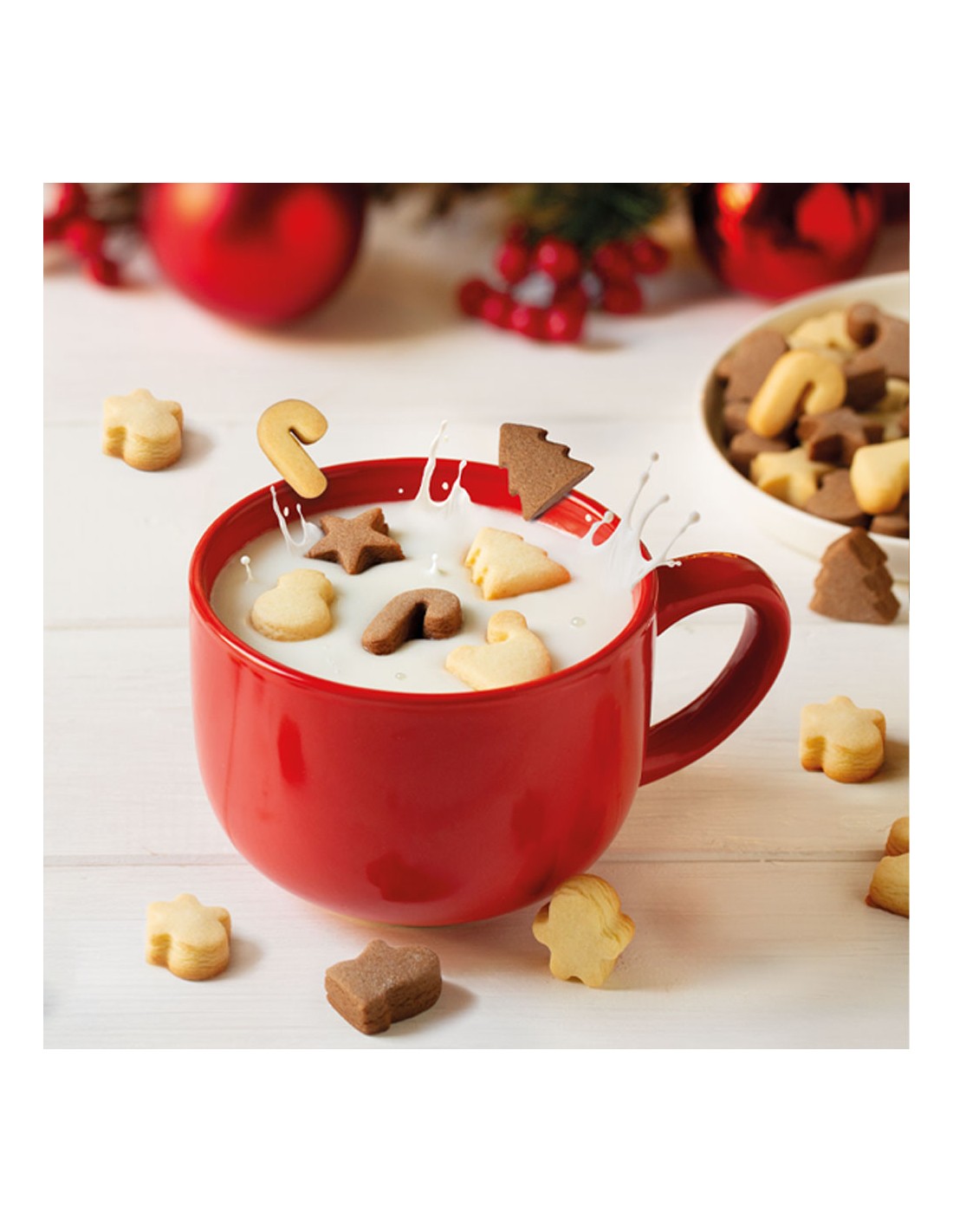 Un plato cortapastas multiforma, con prácticas asas laterales, para realizar multitud de galletas temáticas. Perfecto para mojar en leche y hacer que el desayuno navideño sea aún más dulce.