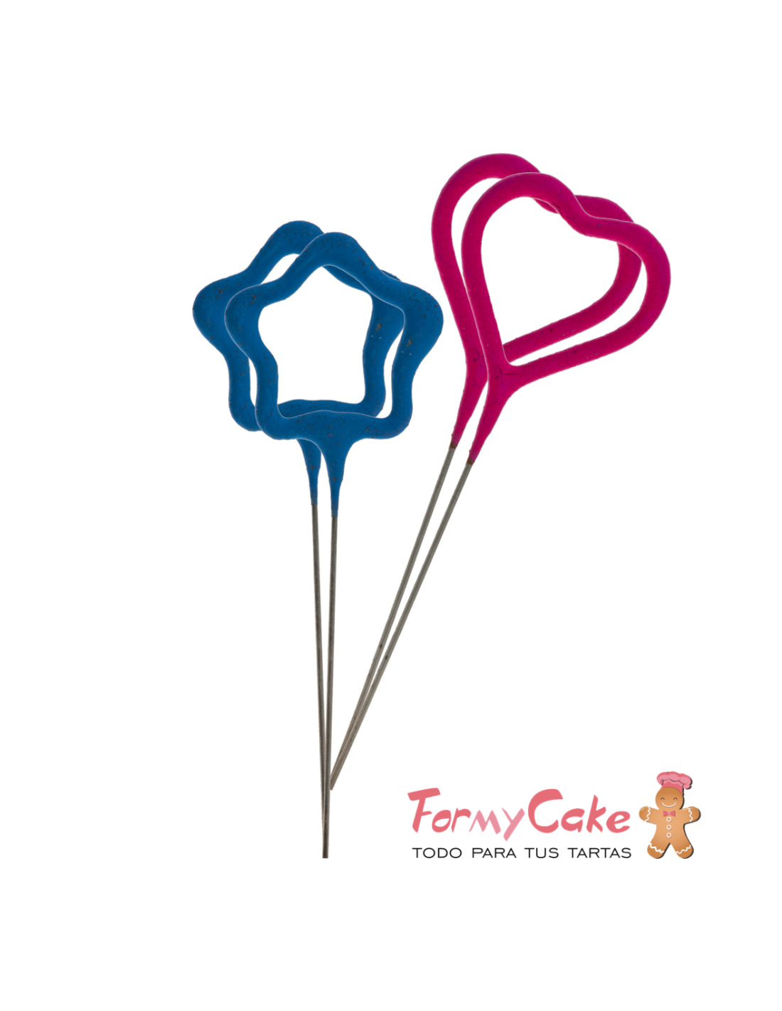 Bengalas 2 Corazones y 2 Estrellas De Color Dekora