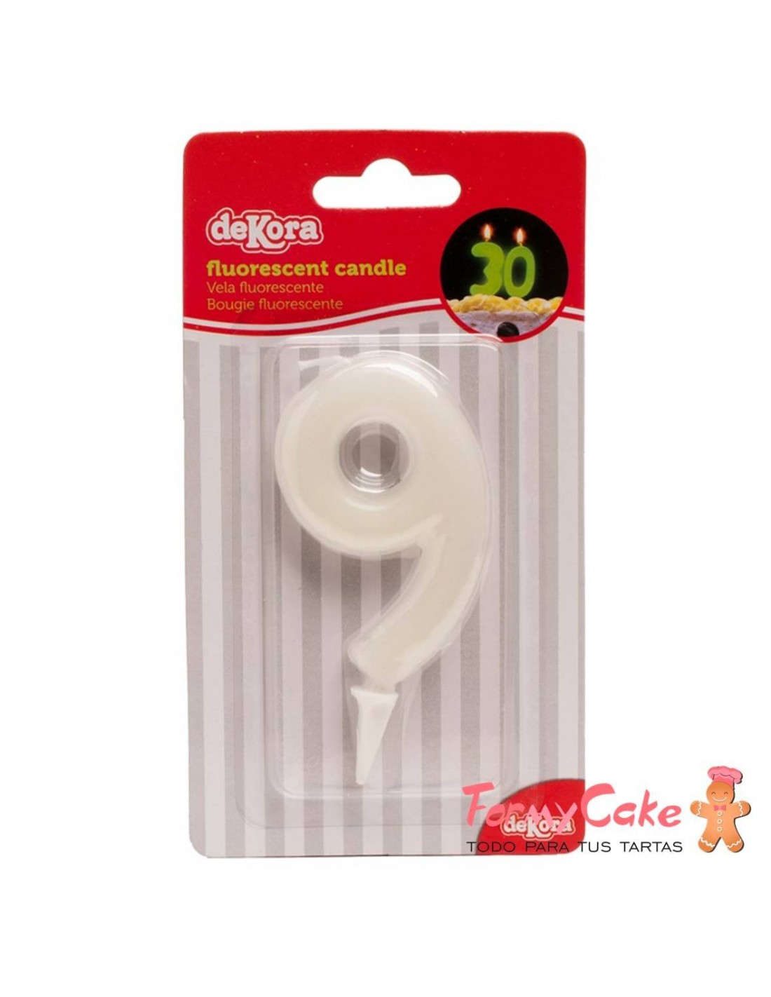 Velas fluorescente de 6cm, más el pincho, del número 9