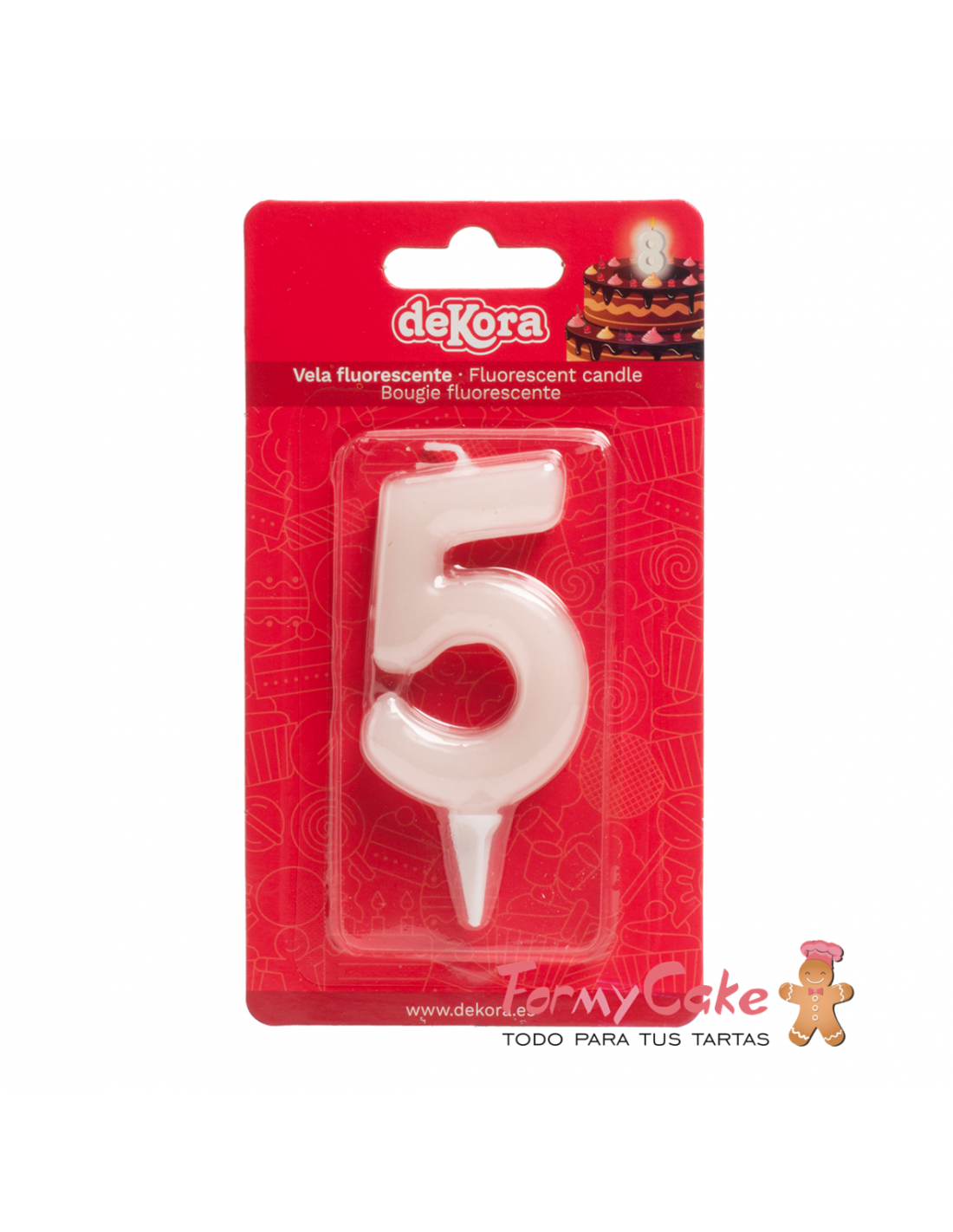 Velas fluorescente de 6cm, más el pincho, del número 5