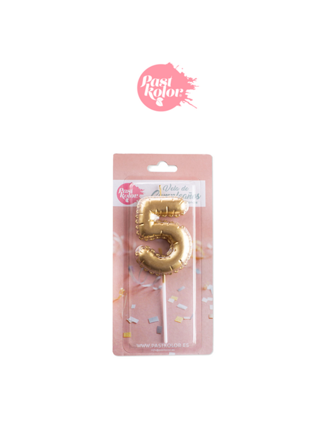 Vela de cumpleaños con forma de globo color oro, ideal para darle un toque elegante y original a los cumpleaños.
