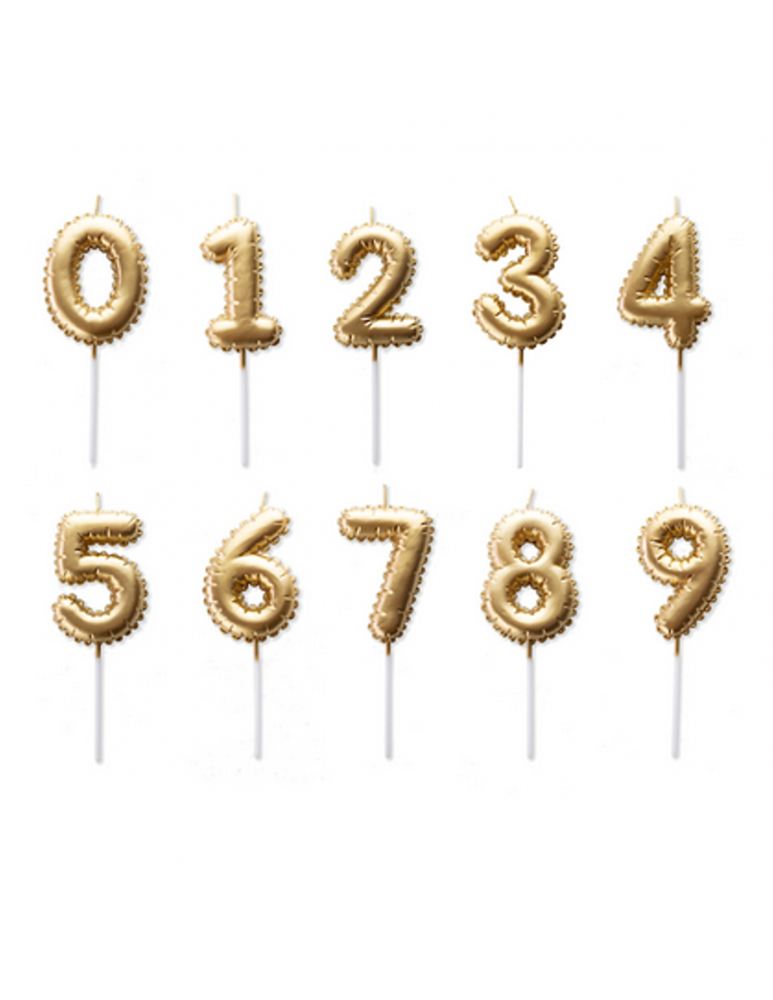 Vela de cumpleaños con forma de globo color oro, ideal para darle un toque elegante y original a los cumpleaños.