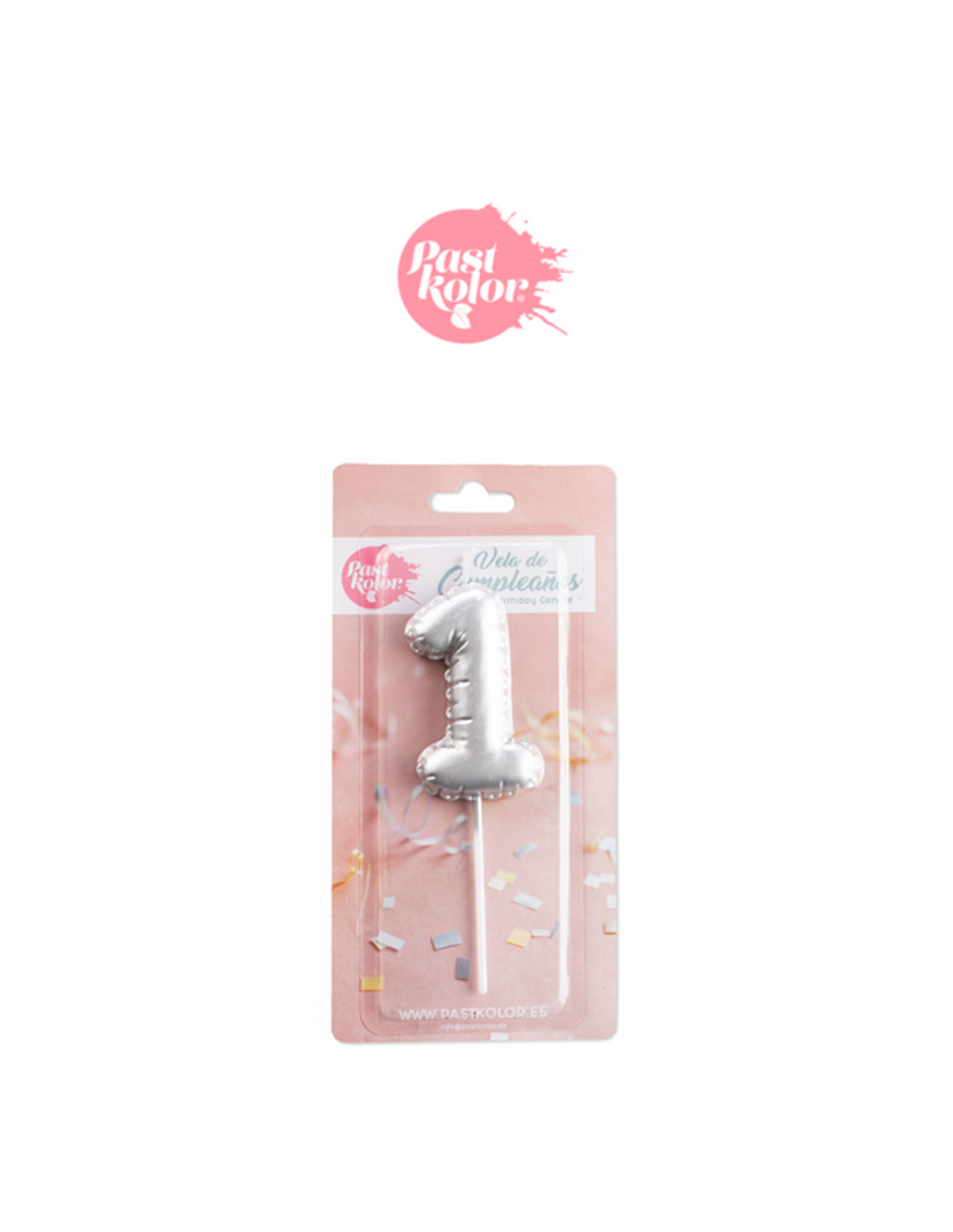 Vela de cumpleaños con forma de globo color plata, ideal para darle un toque elegante y original a los cumpleaños.